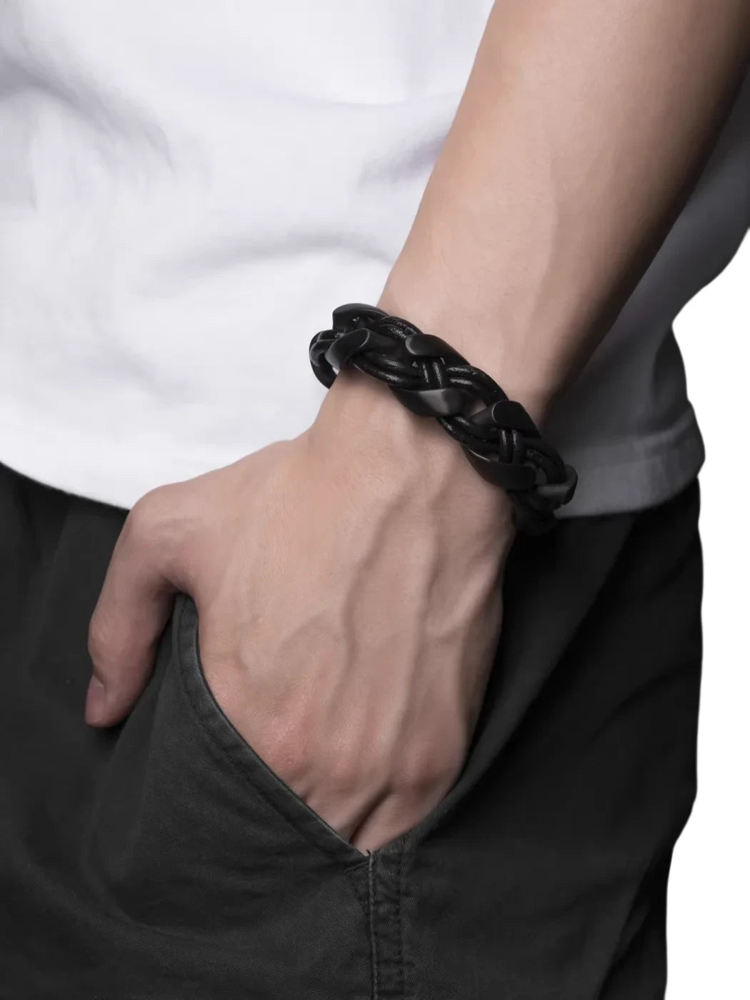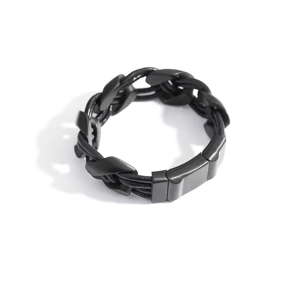 Elevate your accessory collection with this braided leather rope bracelet, crafted in a retro woven style for a timeless appeal. Designed with interlocking links and a seamless loop, this bracelet delivers a bold yet sleek aesthetic ideal for men.