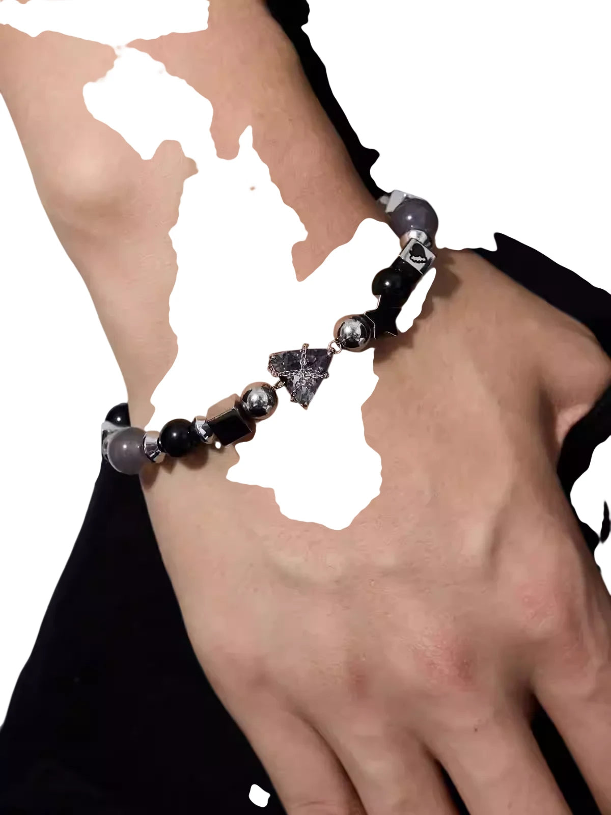 A striking centerpiece combines a triangular clear gemstone and a shiny star-shaped charm to add a touch of personality and seasonal flair. The bracelet includes a secure chain and clasp for adjustable sizing, making it a fashionable and versatile accessory for the holiday season.