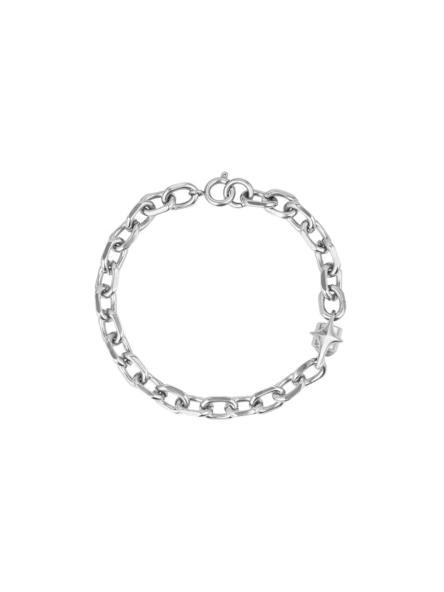 Elevate your accessory game with this unisex double-layer chain bracelet, featuring a striking mix of thick and thin interlinked segments for a bold textured appearance. At its center hangs a standout gold pendant adorned with an embossed silver star, delivering a unique focal point. A star-shaped accent embedded into the chain adds an extra touch of modern flair. Designed to suit both couples and men, this bracelet offers a contemporary and edgy look perfect for everyday wear or special occasions.