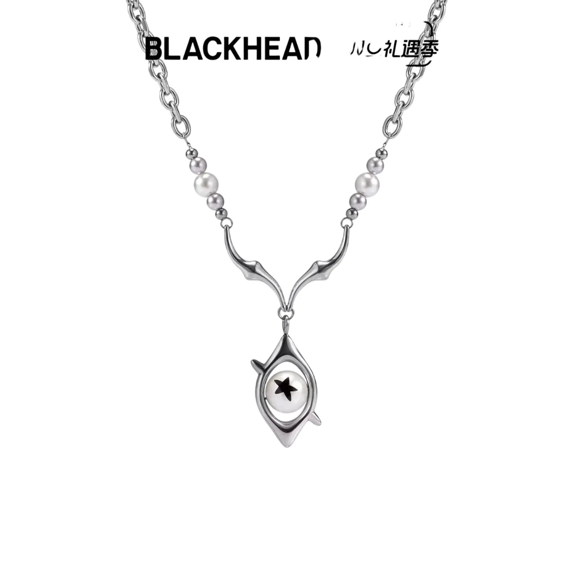 BLACKHEAD Gradient Pearl and Metal Bead Necklace with Eye Pendant