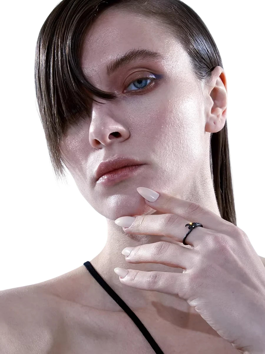 Make a bold statement with this intricately designed men's ring, featuring a coiled snake motif that wraps around the finger. Crafted from durable titanium steel, the ring showcases detailed scale textures and a polished silver-toned finish. The snake's fierce expression is accentuated by two black rhinestone eyes, adding a gothic edge to its punk-inspired aesthetic.