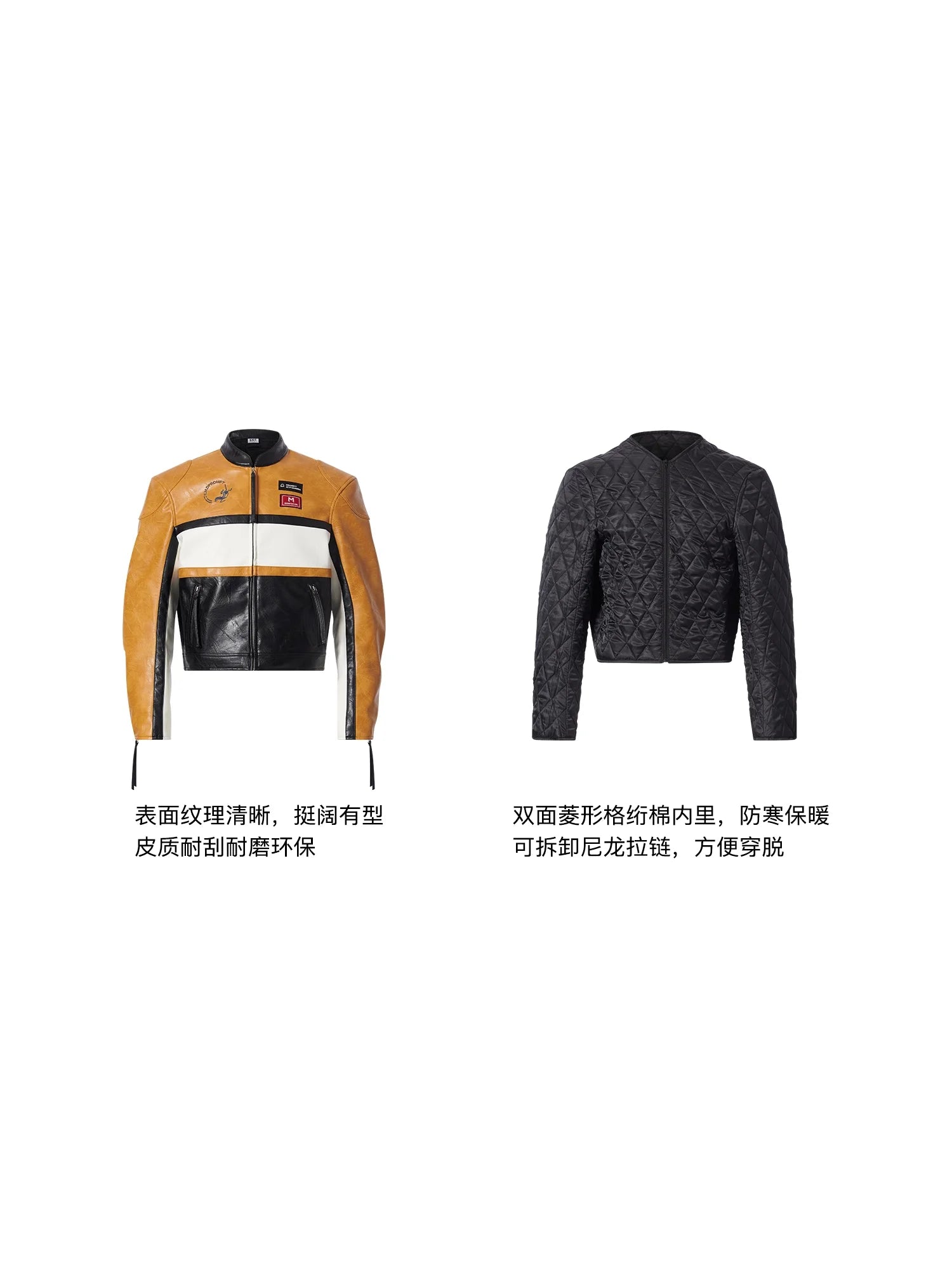 BLINDNOPLAN Colorblock Detachable Cotton Motorcycle Jacket