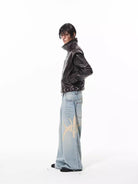 BLINDNOPLAN Crocodile Pattern Faux Leather Jacket with Metal Belt