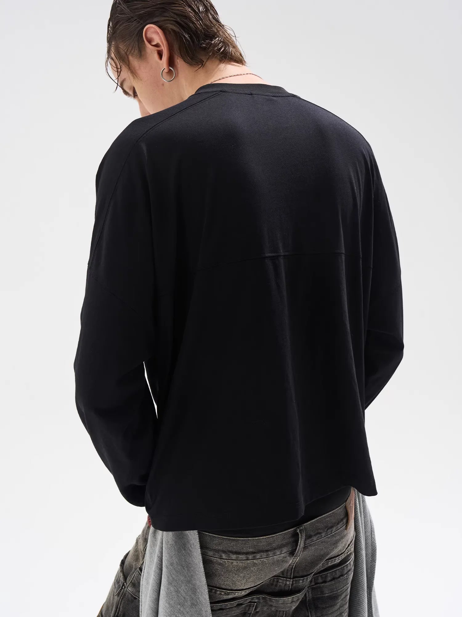 BLINDNOPLAN Double-Layer Distressed Long Sleeve T-Shirt - Black