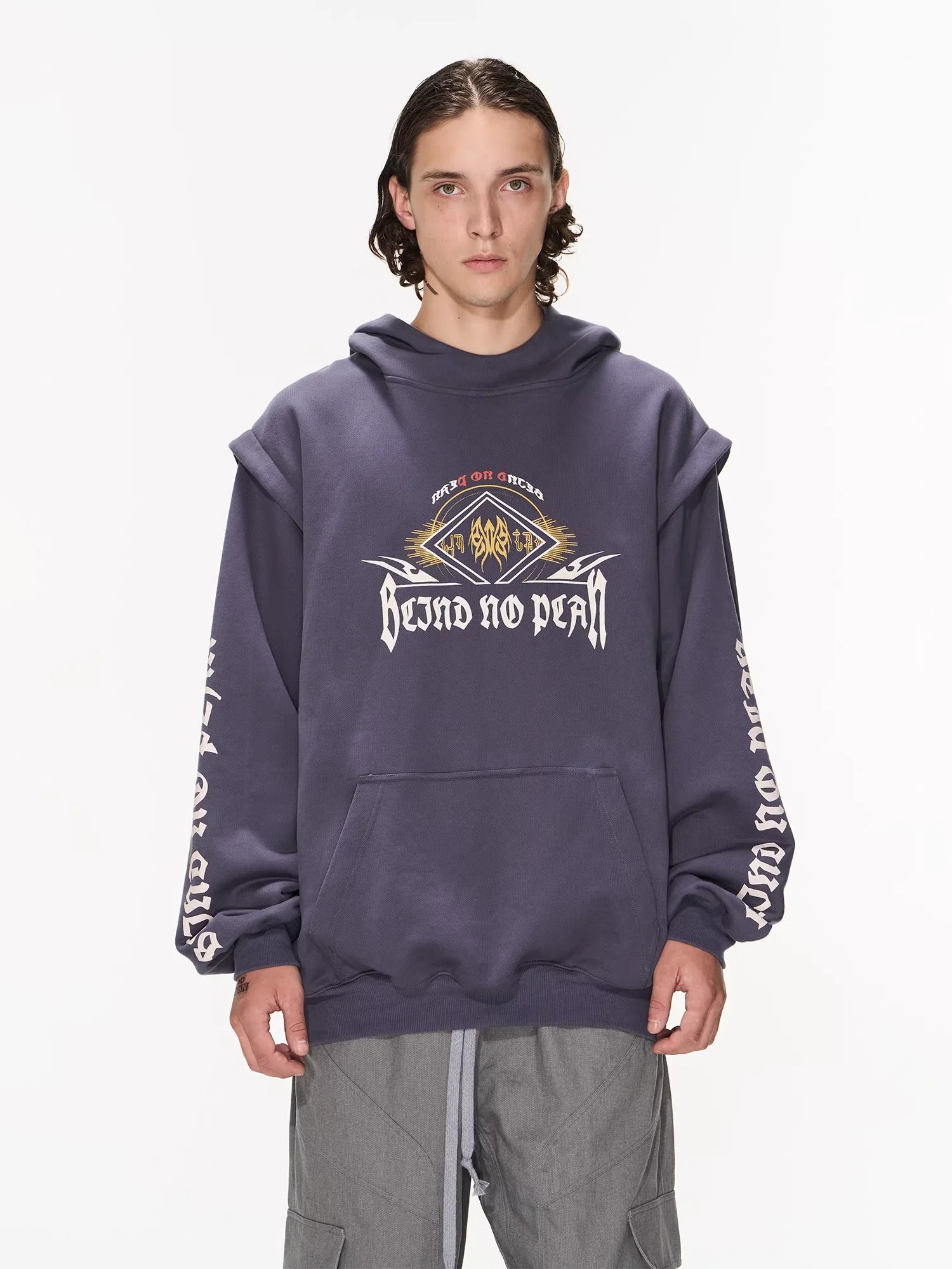 BLINDNOPLAN Men's Avant-Garde Graphic Hooded Sweatshirt - Fake Two-Piece Design
