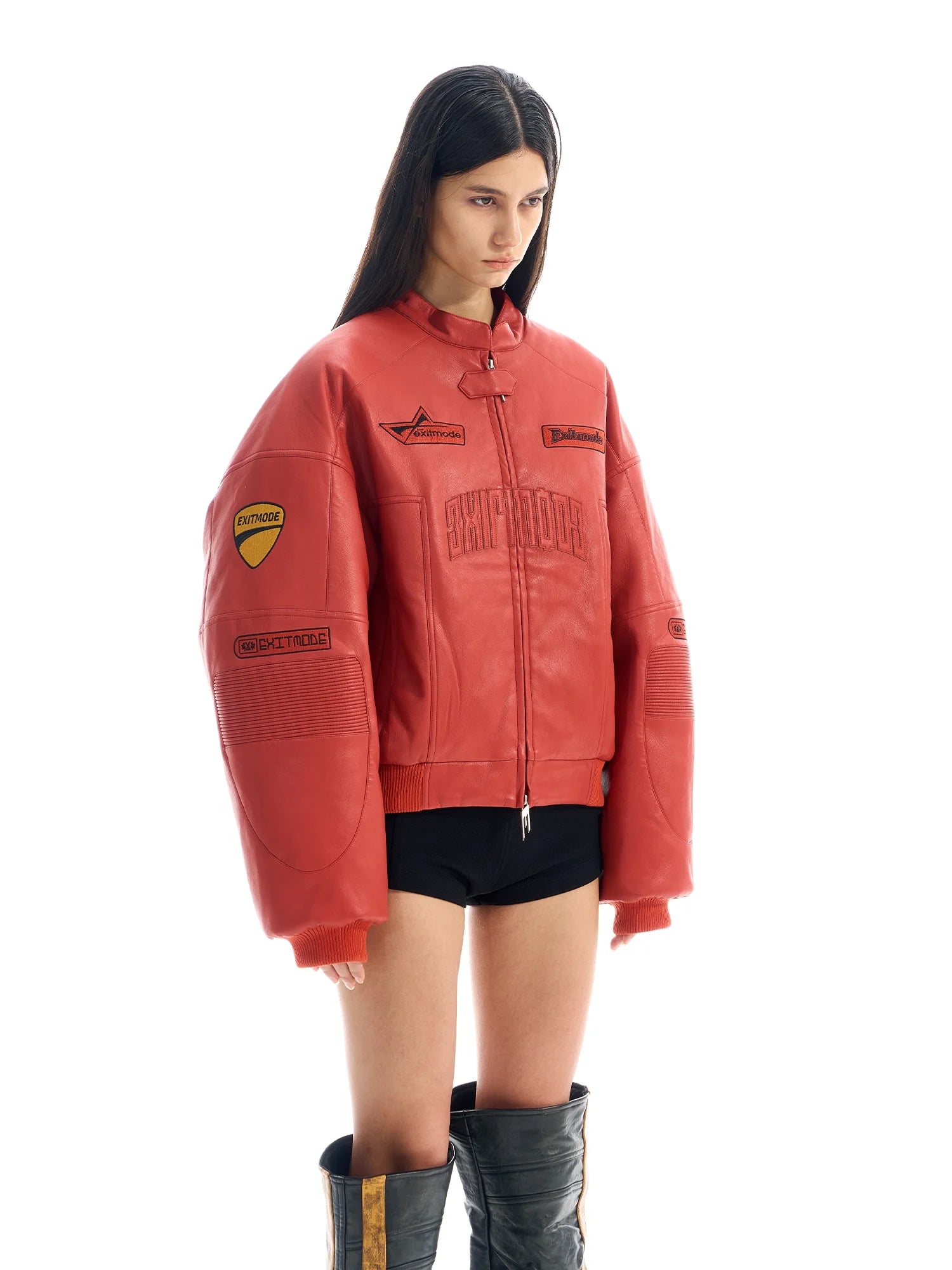 BLINDNOPLAN Oversized Racing-Inspired Faux Leather Jacket