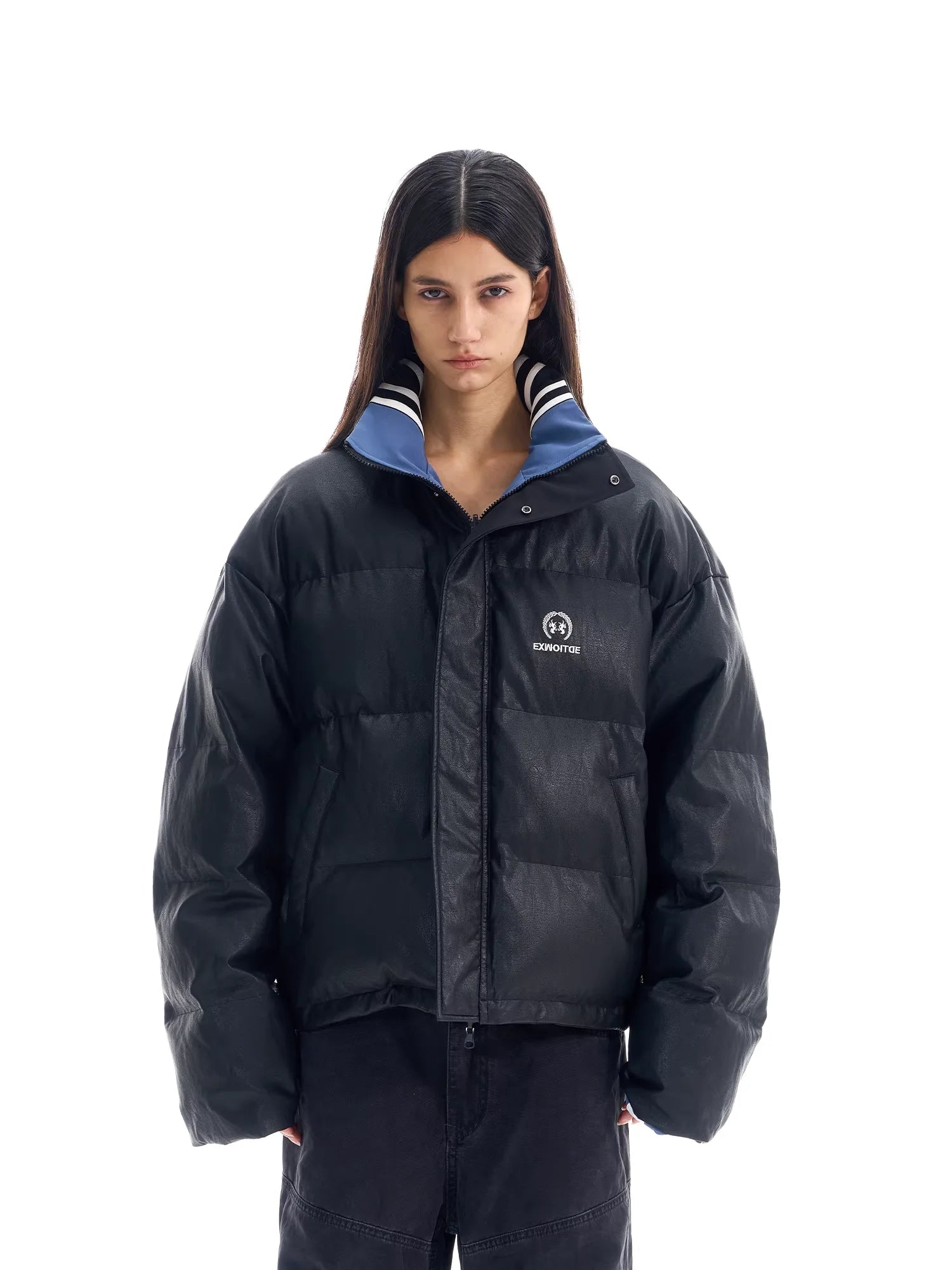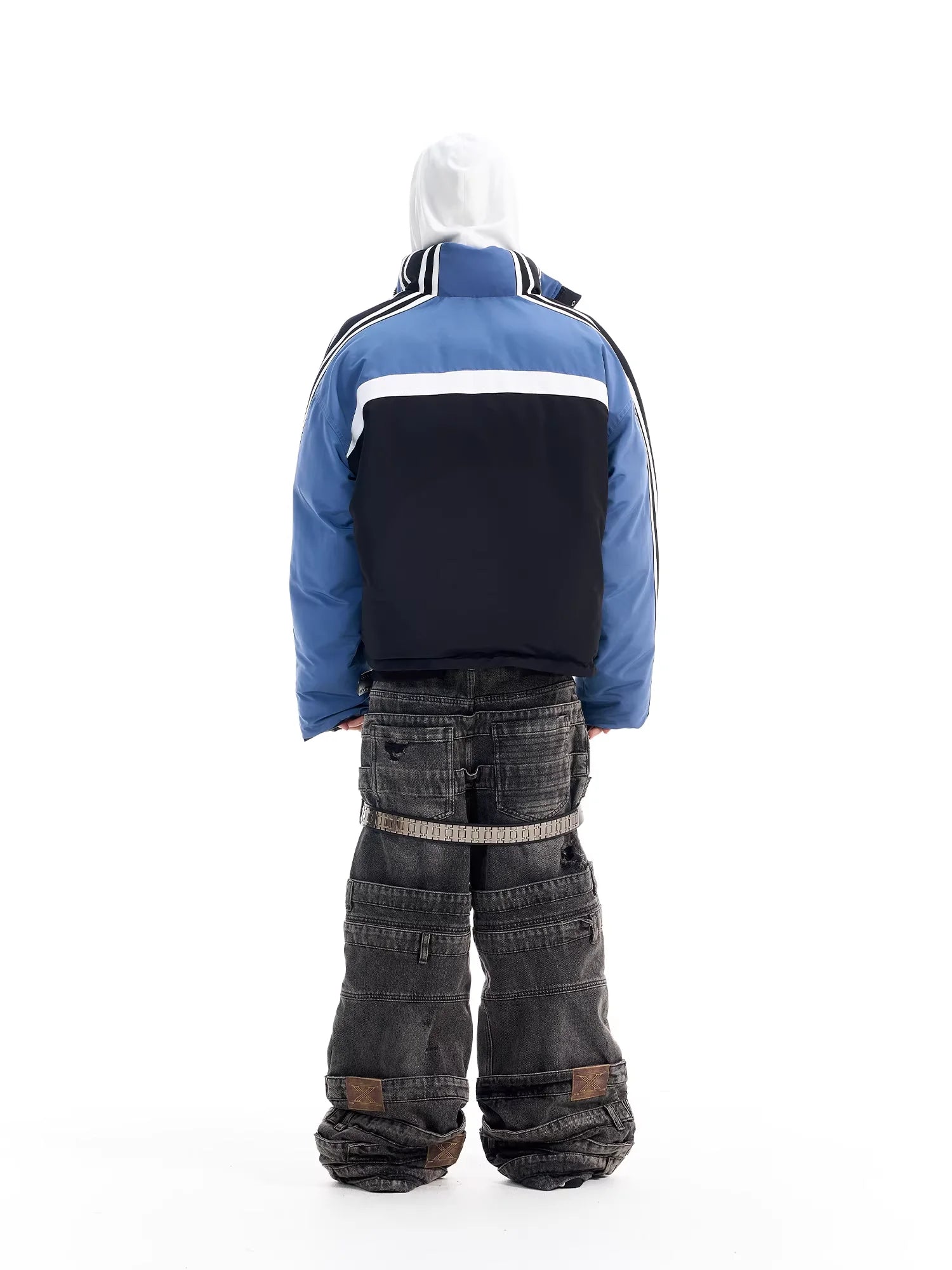 Stay warm in style with this reversible cotton sports jacket designed for winter wear. Featuring a bold streetwear aesthetic, this jacket offers two versatile looks in one. The men’s version includes a color-blocked design with black, blue, and white tones, paired effectively with layered outfits. The women's version showcases an oversized silhouette with a striking blue inner lining, adding volume and edge to any winter ensemble. Ideal for urban fashion enthusiasts, this jacket combines practicality with a contemporary design perfect for cold weather layering.