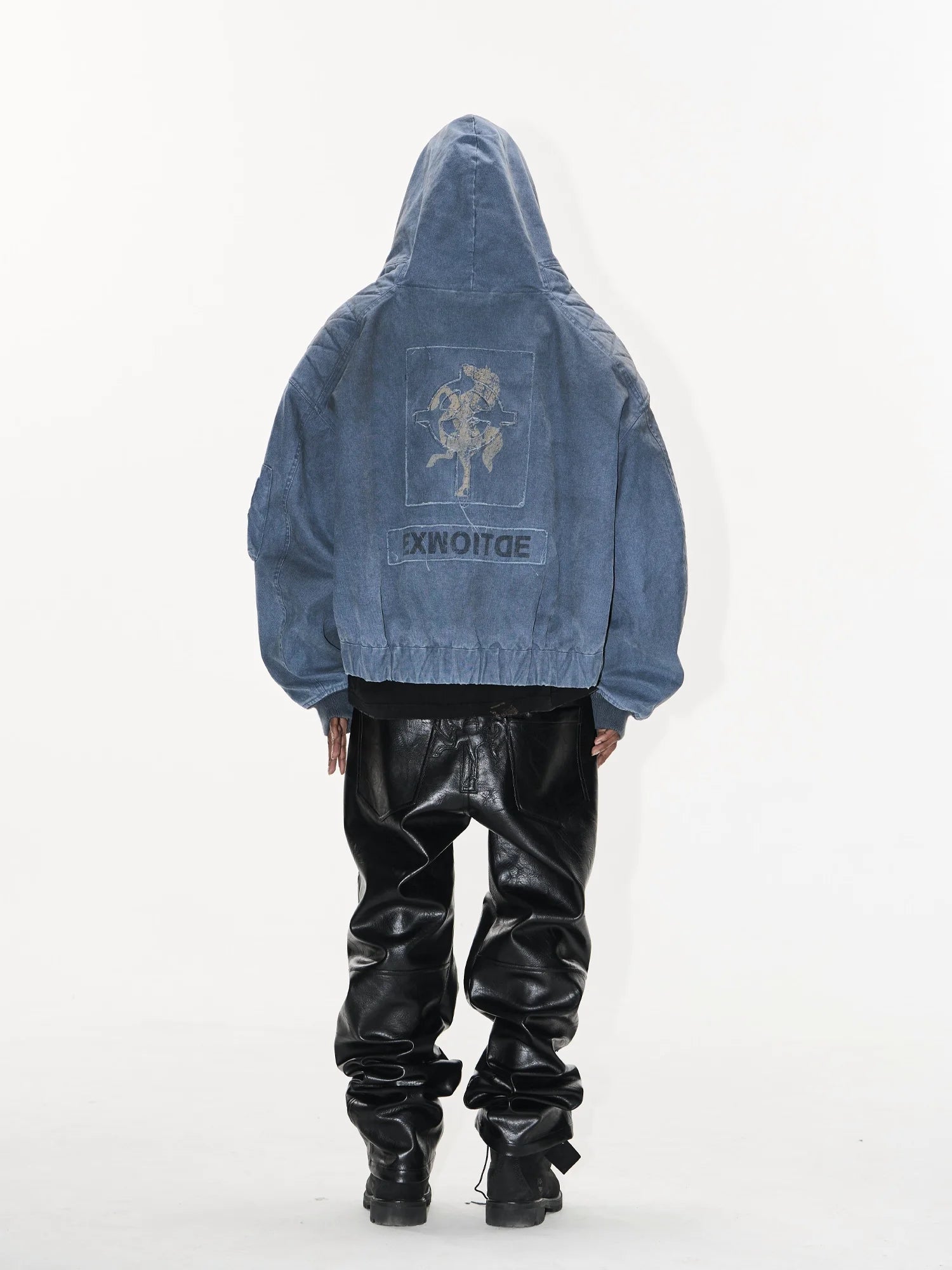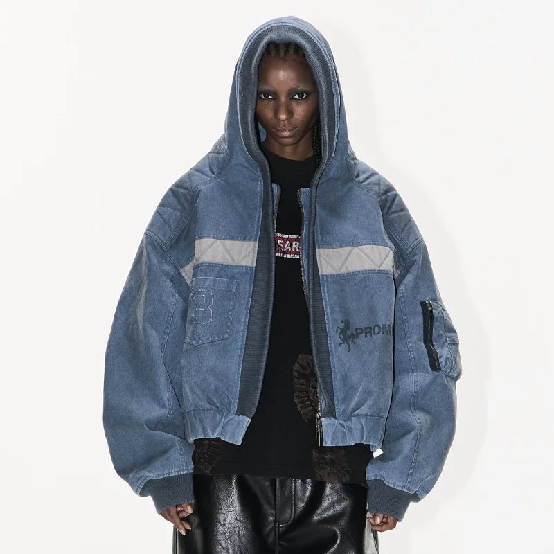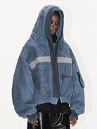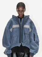 BLINDNOPLAN Washed Denim MA-1 Hooded Bomber Jacket