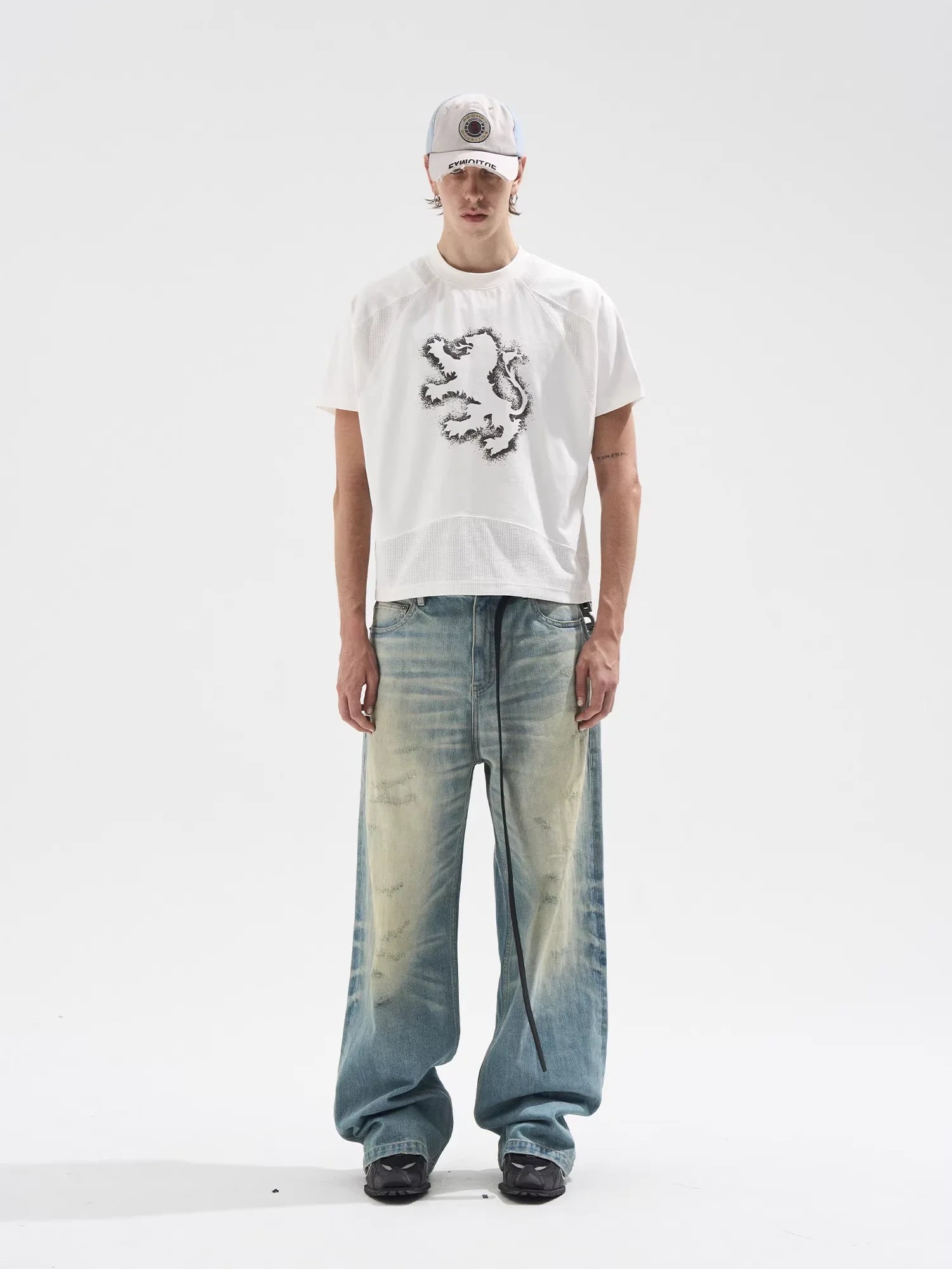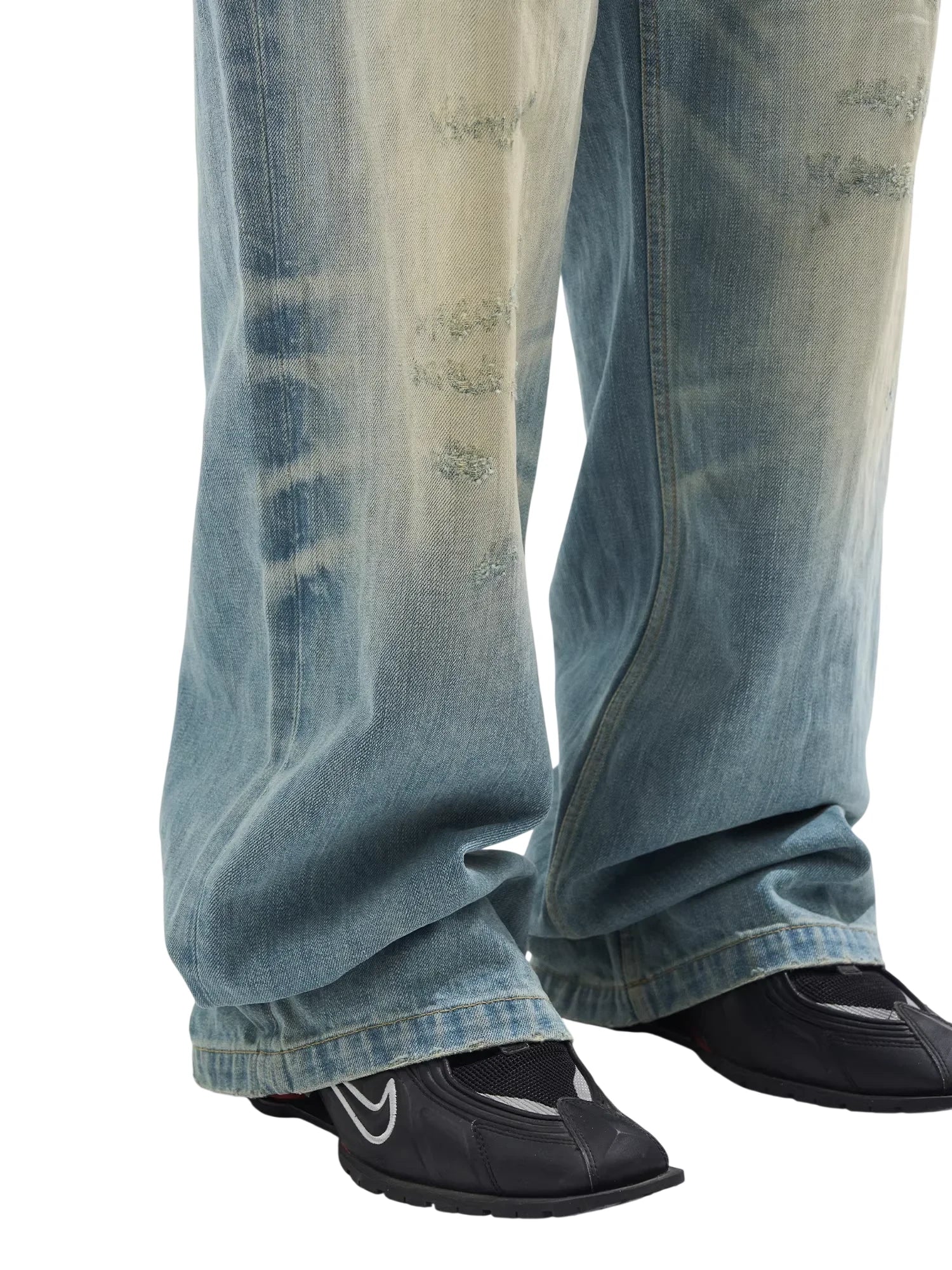 BLINDNOPLAN Whisker Washed Wide-Leg Distressed Denim Jeans