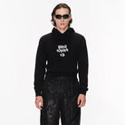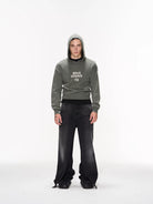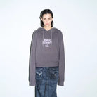 This women's oversized knit pullover sweater features a casual hooded design with a relaxed, streetwear-inspired fit. Crafted in a dark grey tone, it includes a drawstring hood, dropped shoulders, and a bold front graphic print. The soft knit texture ensures comfort while maintaining a modern, urban aesthetic—ideal for layering in cooler seasons.