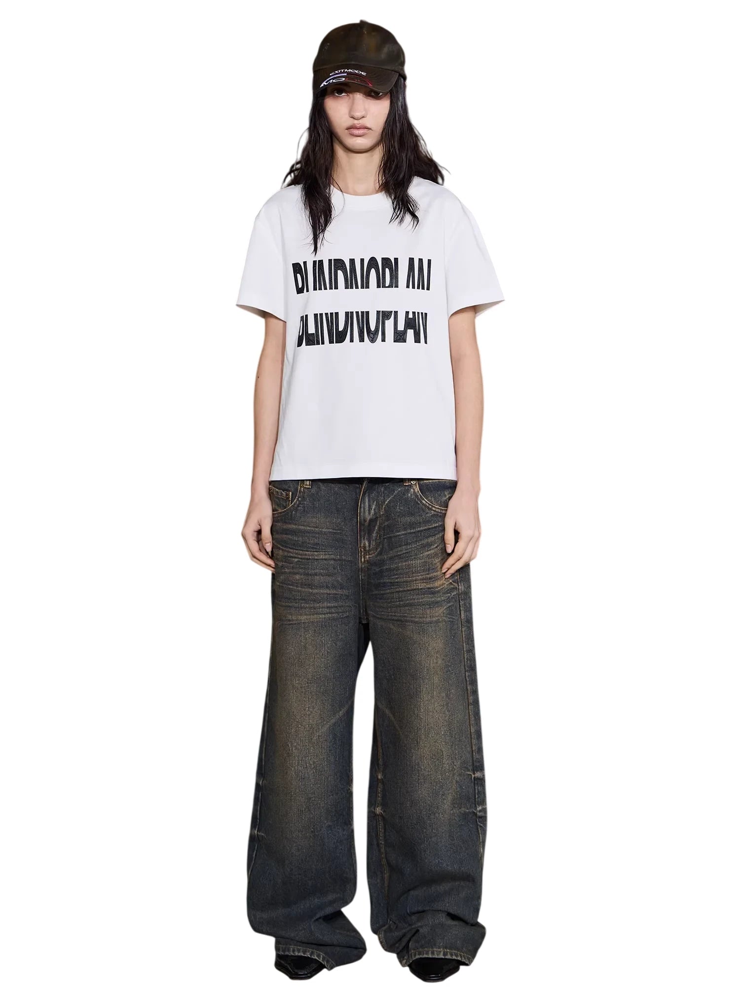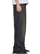 BLINDNOPLAN Yellow Mud-Dyed Distressed Pleated Loose Jeans