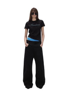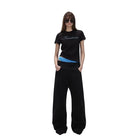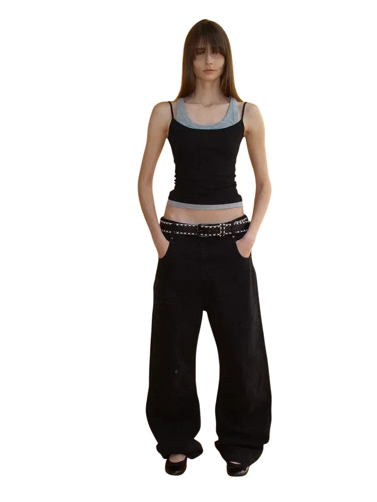 Designed with a modern streetwear edge, these high-waisted black jeans feature an extra-wide leg silhouette that adds bold volume and movement. The straight waist and curved square pockets provide a structured yet relaxed fit, perfect for creating standout casual outfits. Styled here on a female model, the jeans offer both comfort and on-trend appeal for everyday wear.