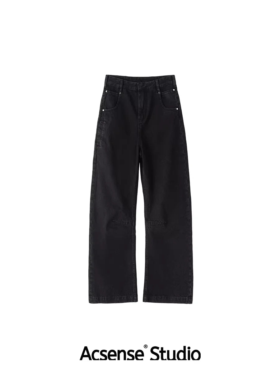 ACSENSE STUDIO High-Waisted Wide-Leg Black Jeans