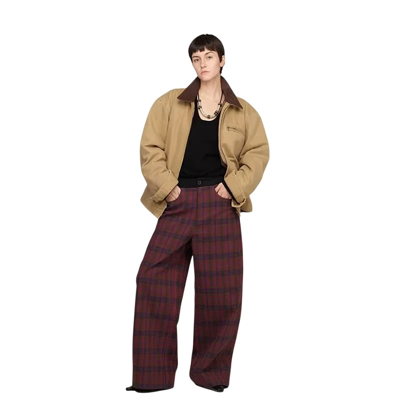 Elevate your casual wardrobe with these statement-making wide-leg pants, featuring a bold blue and red plaid contrast patchwork design. Styled with a relaxed fit, these pants offer both comfort and a contemporary, vintage-inspired edge. Designed for women, they pair effortlessly with oversized jackets and simple tops for an on-trend, laid-back look.