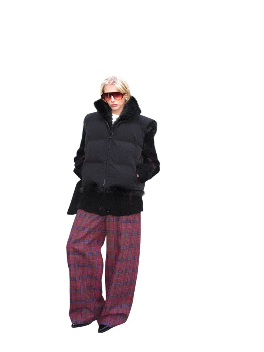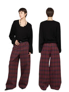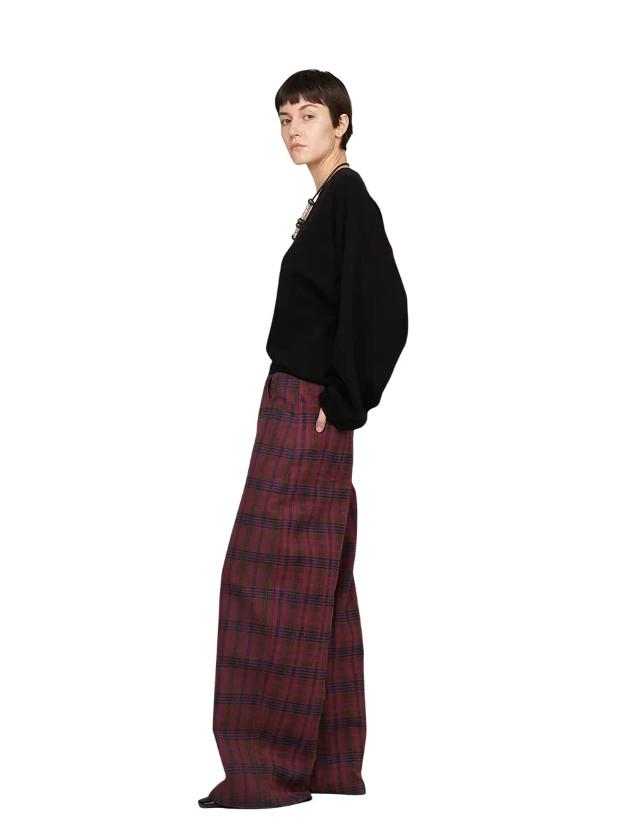 ACSENSE STUDIO Plaid Patchwork Wide-Leg Pants