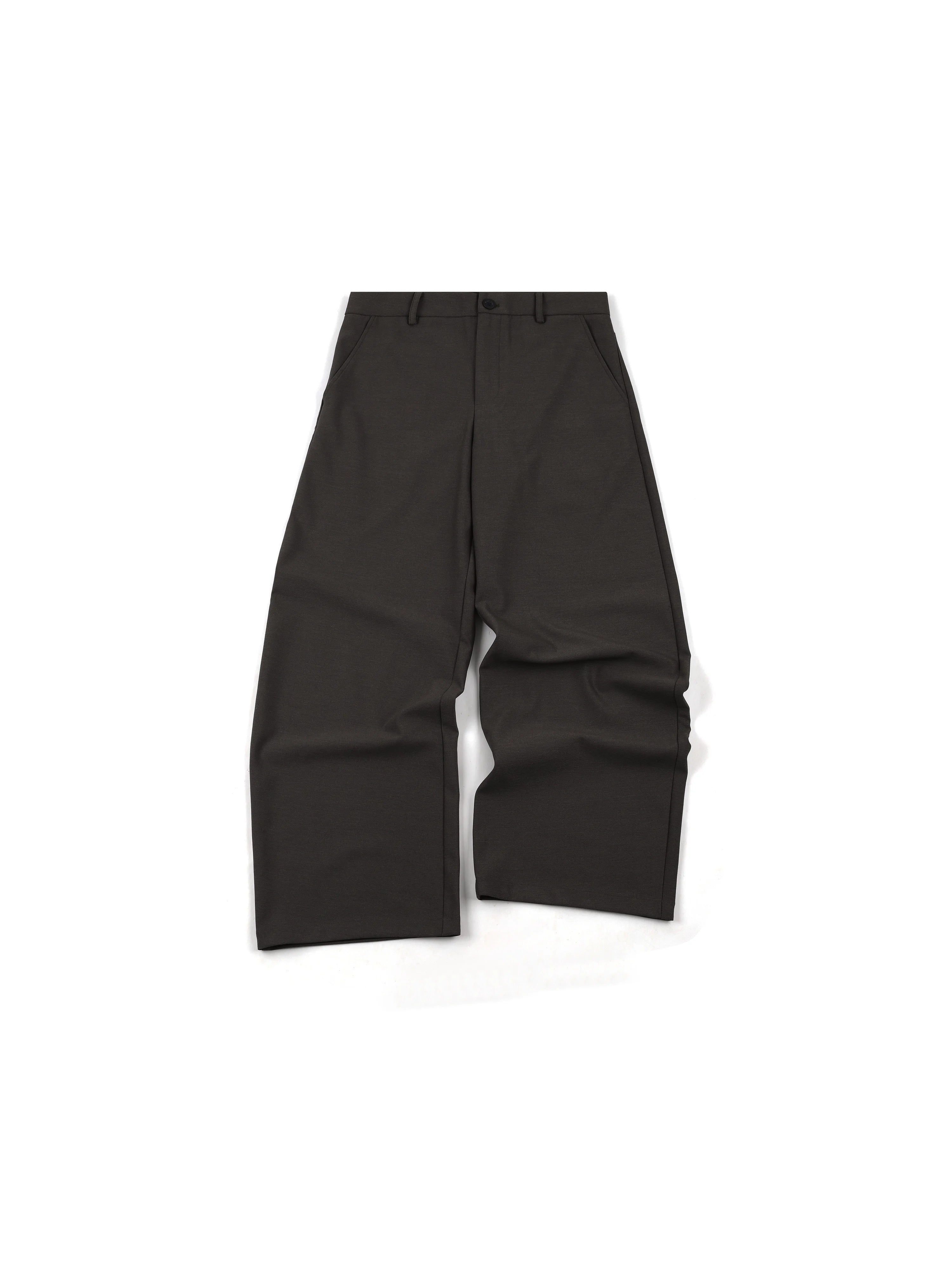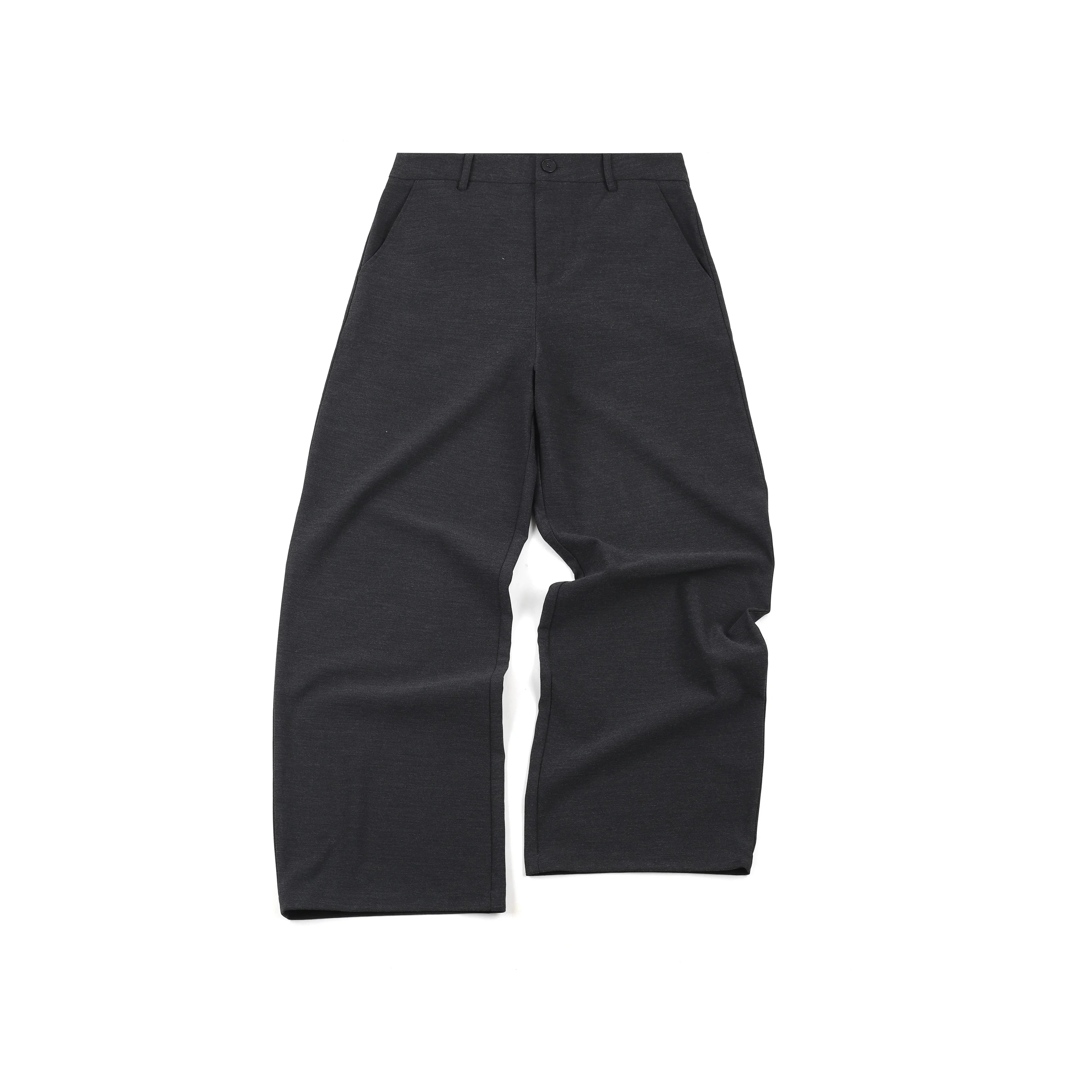 These men's wide-leg trousers come in a refined dark charcoal hue, offering a perfect balance between casual comfort and tailored style. Designed with a flat front, button and zipper closure, and angled side pockets, they feature a versatile cut that suits both everyday and semi-formal wear. Crafted from medium-weight fabric, they ensure durability and ease throughout the day. Belt loops add to their functionality, making them easy to pair with your favorite accessories.