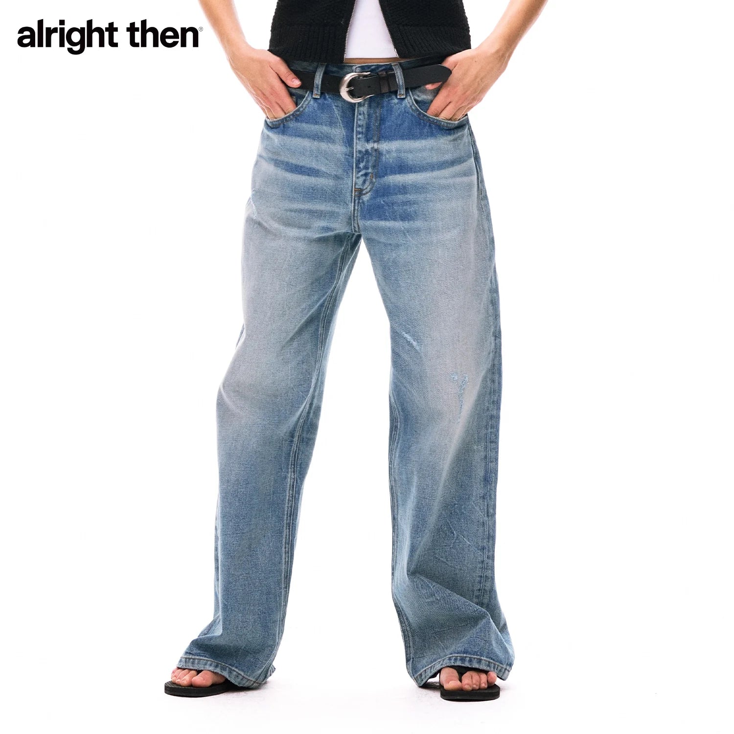 alright then Women's Loose Fit High-Waisted Distressed Denim Jeans