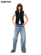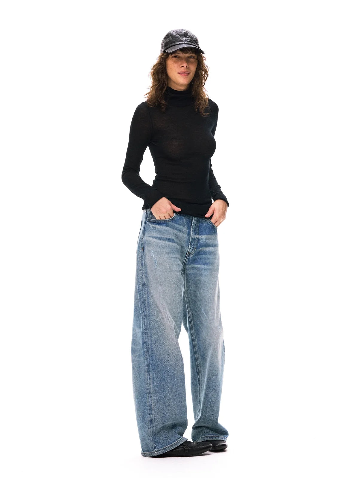 Elevate your casual style with these women's loose fit high-waisted denim jeans. Featuring a vintage-inspired faded wash and handmade distressed detailing, these jeans offer a relaxed wide-leg silhouette for effortless streetwear appeal. Complete with a classic five-pocket design, they pair perfectly with belts and layered tops. The slouchy fit around the hips and thighs makes them a comfortable and stylish addition to your everyday wardrobe.