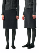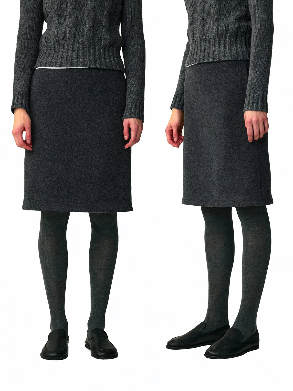 This women's knee-length H-line skirt is crafted from a soft wool blend, offering both comfort and style. Featuring a clean, streamlined silhouette and an integrated waist design, it delivers a polished look ideal for casual and semi-formal settings. Available in versatile charcoal and brown tones, this skirt pairs effortlessly with a variety of tops and footwear for a refined finish.