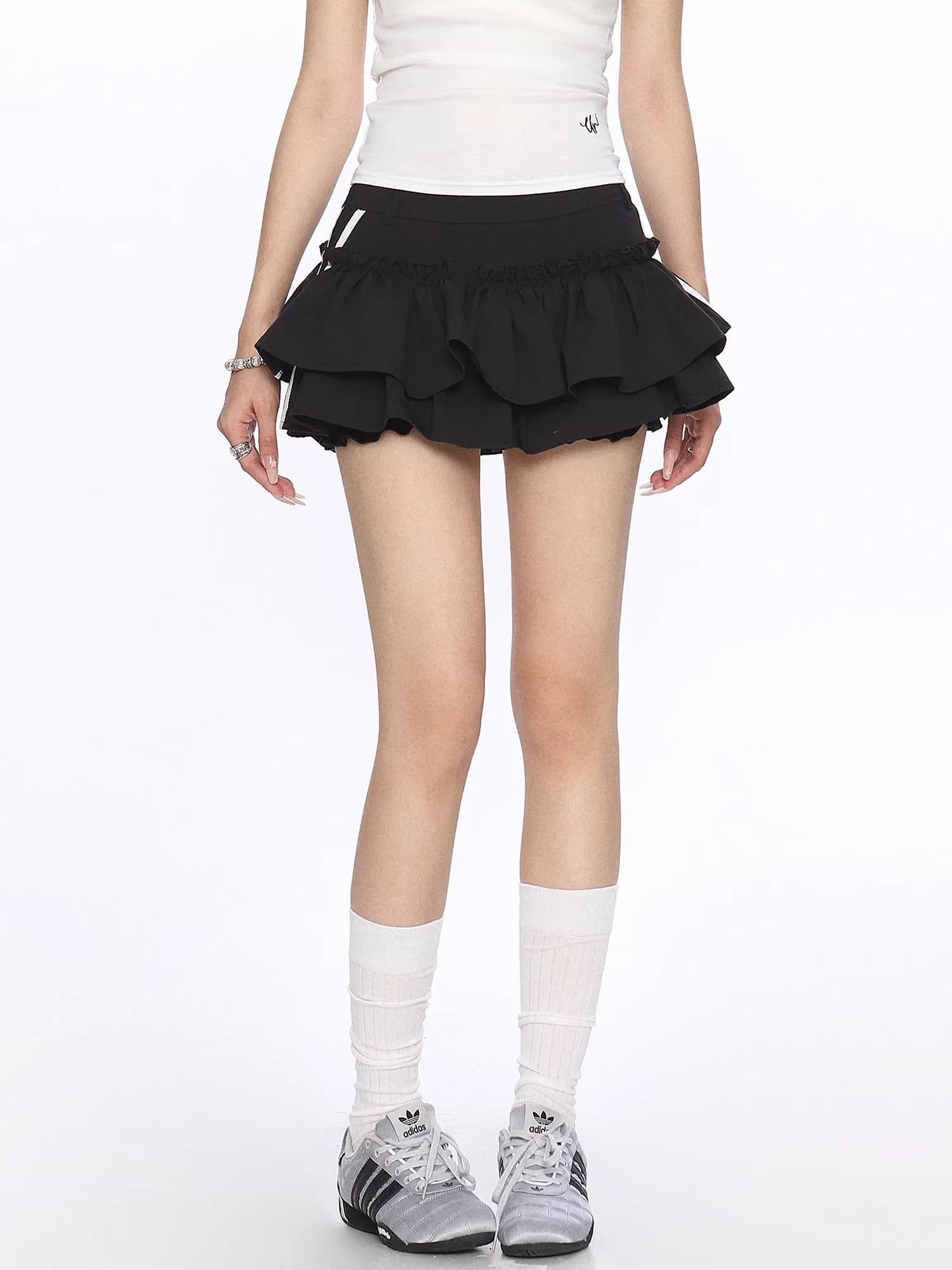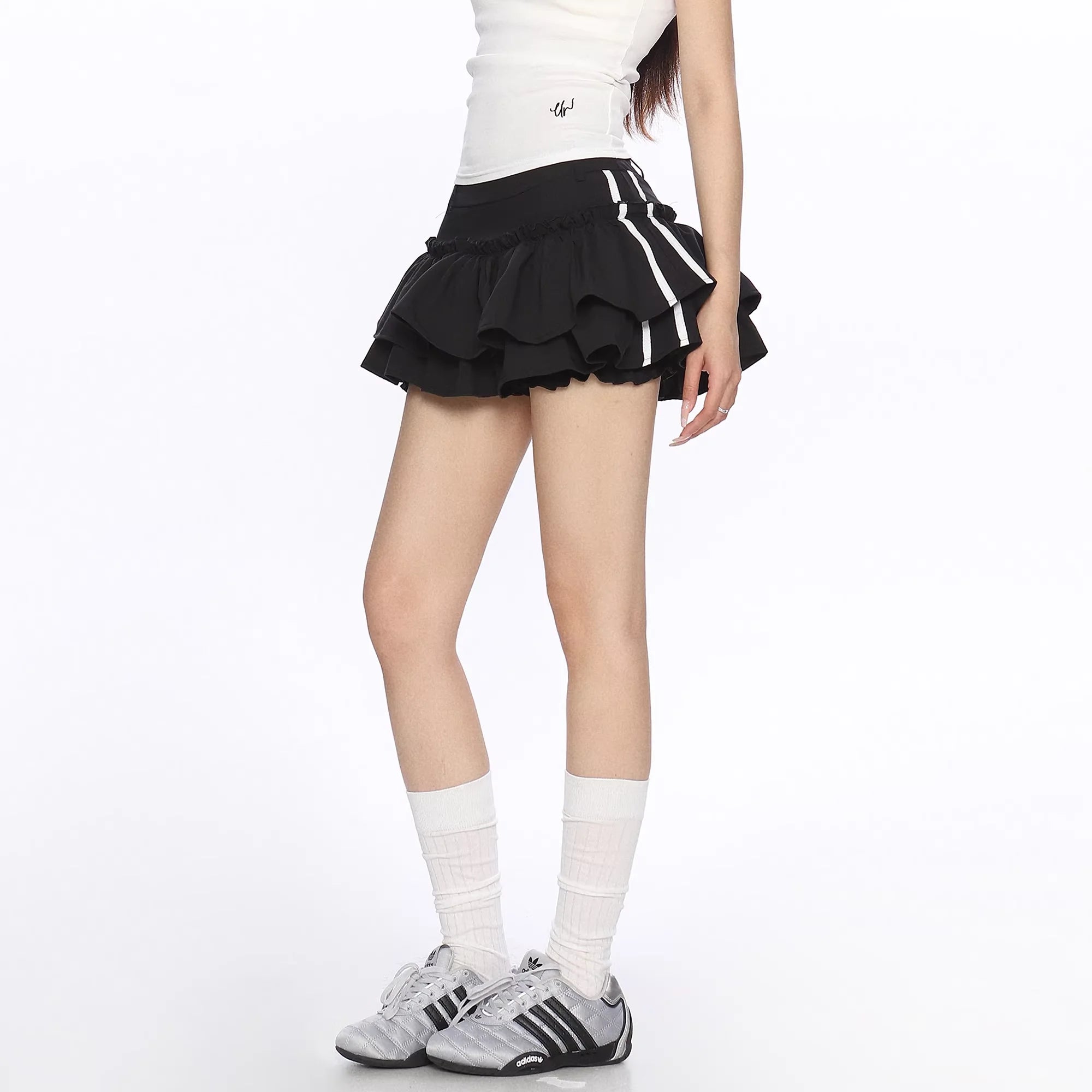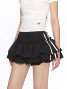 Elevate your casual wardrobe with this sporty and stylish puff mini skirt designed for women. Featuring a high-waisted fit and layered ruffle construction, this skirt combines playful volume with athletic flair. The double white stripes along the sides add a sporty touch, while the built-in anti-exposure shorts provide comfort and coverage. Perfect for summer outings and athleisure-inspired looks.