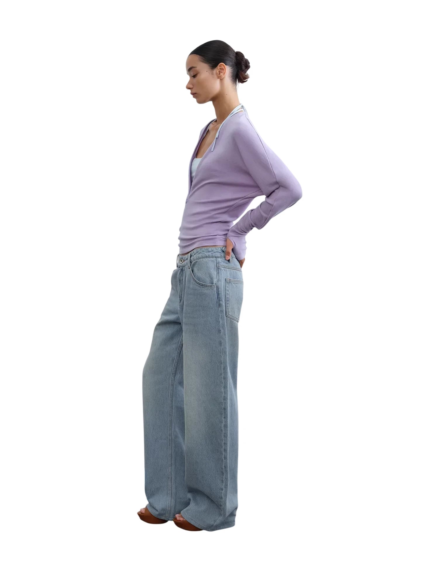 RARELY ALIKE Mid-Rise Raw Denim Wide-Leg Jeans - Light Blue