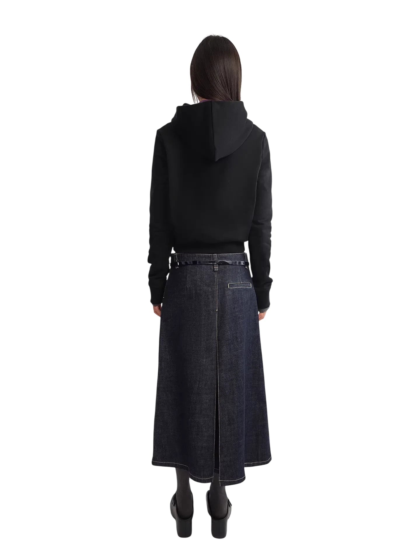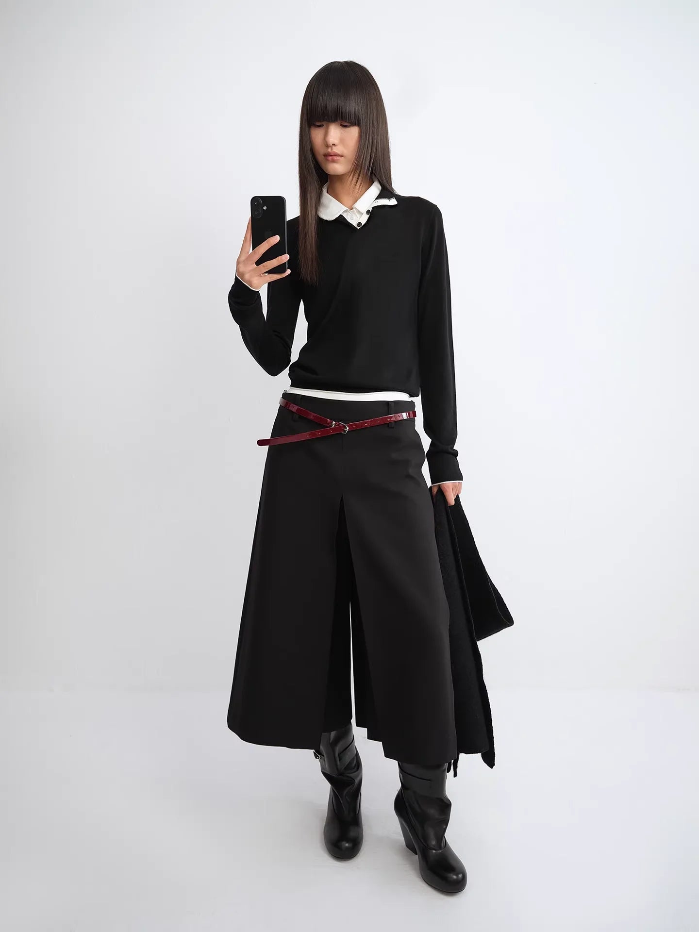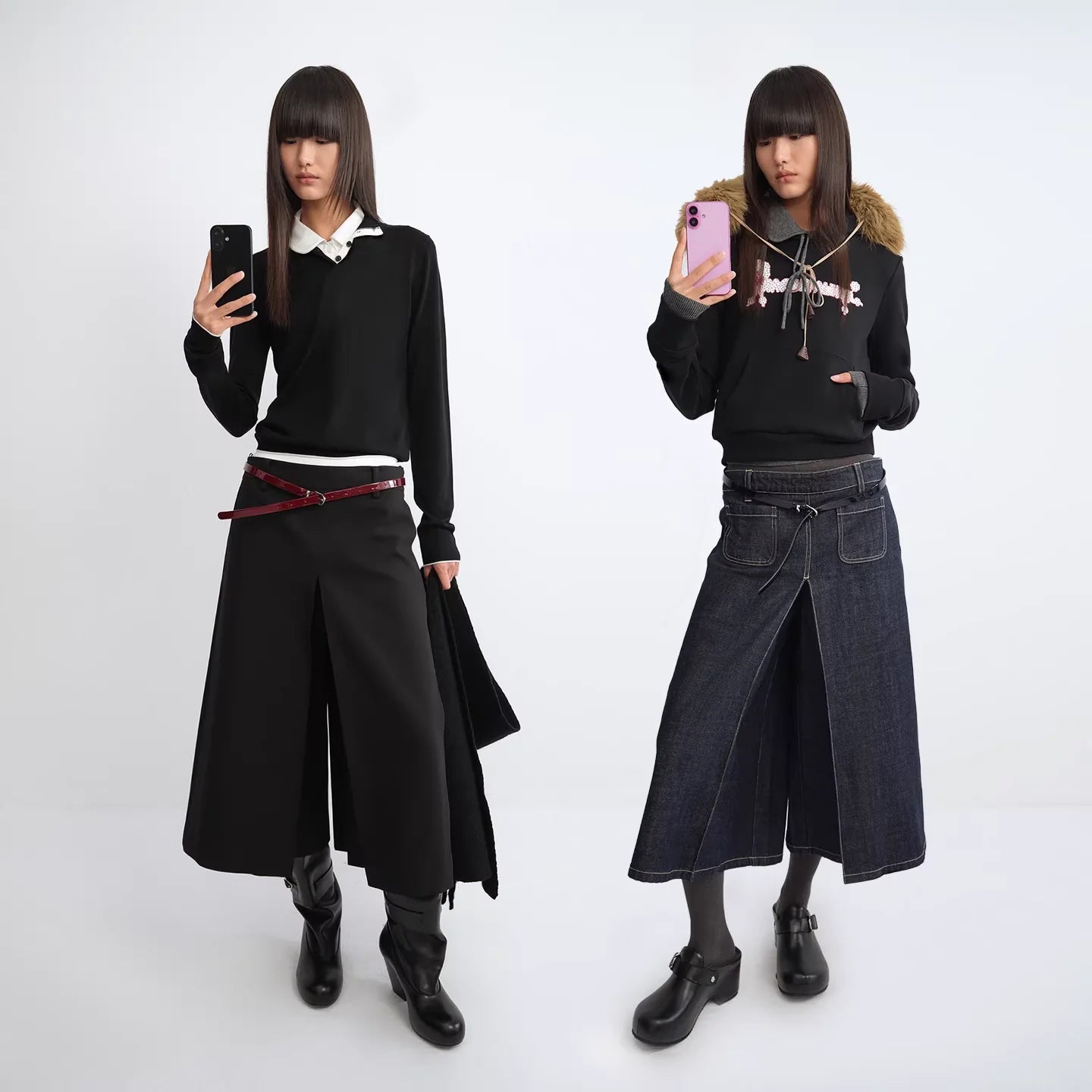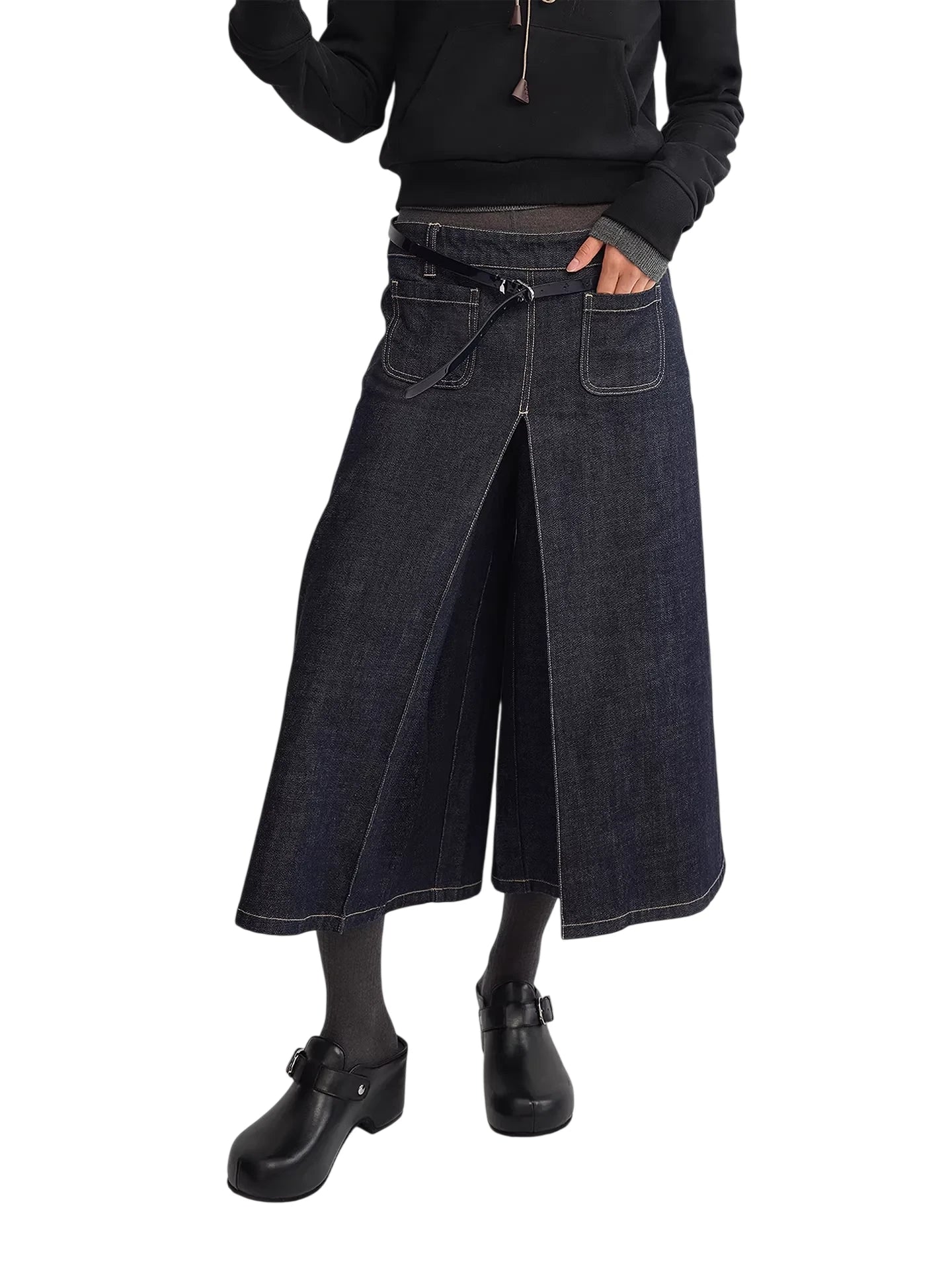 These women's pleated wide-leg cropped jeans offer a bold take on modern denim. Designed with a flattering A-line silhouette, they feature a distinctive front pleat for structural elegance. Available in raw denim and black, the cropped length and wide-leg cut create an edgy yet versatile look suited for both casual and elevated styling.