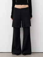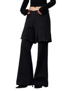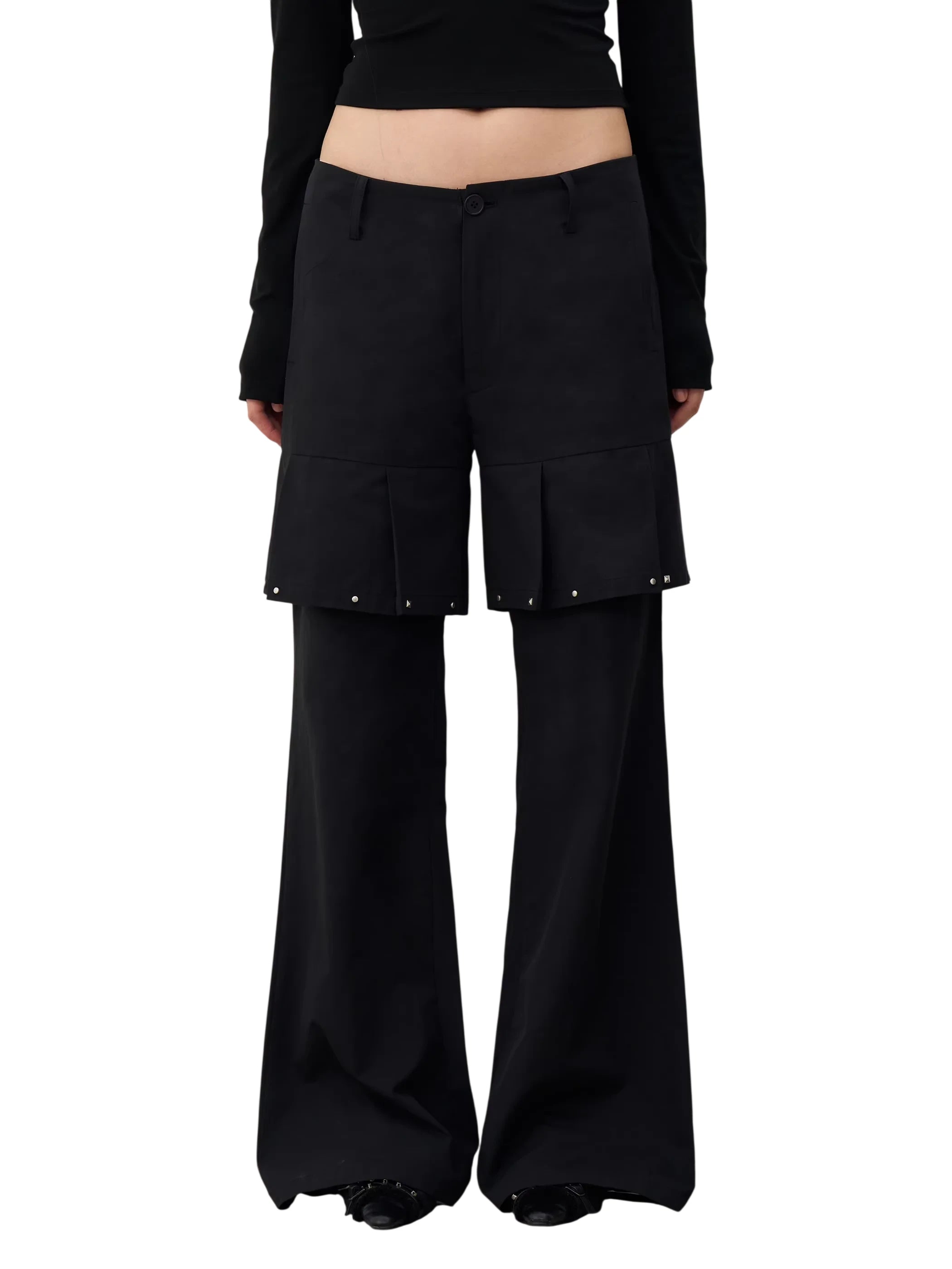 THELIGHT OFFICIAL Two-Piece Black Wide-Leg Pants with Pleated Overlay