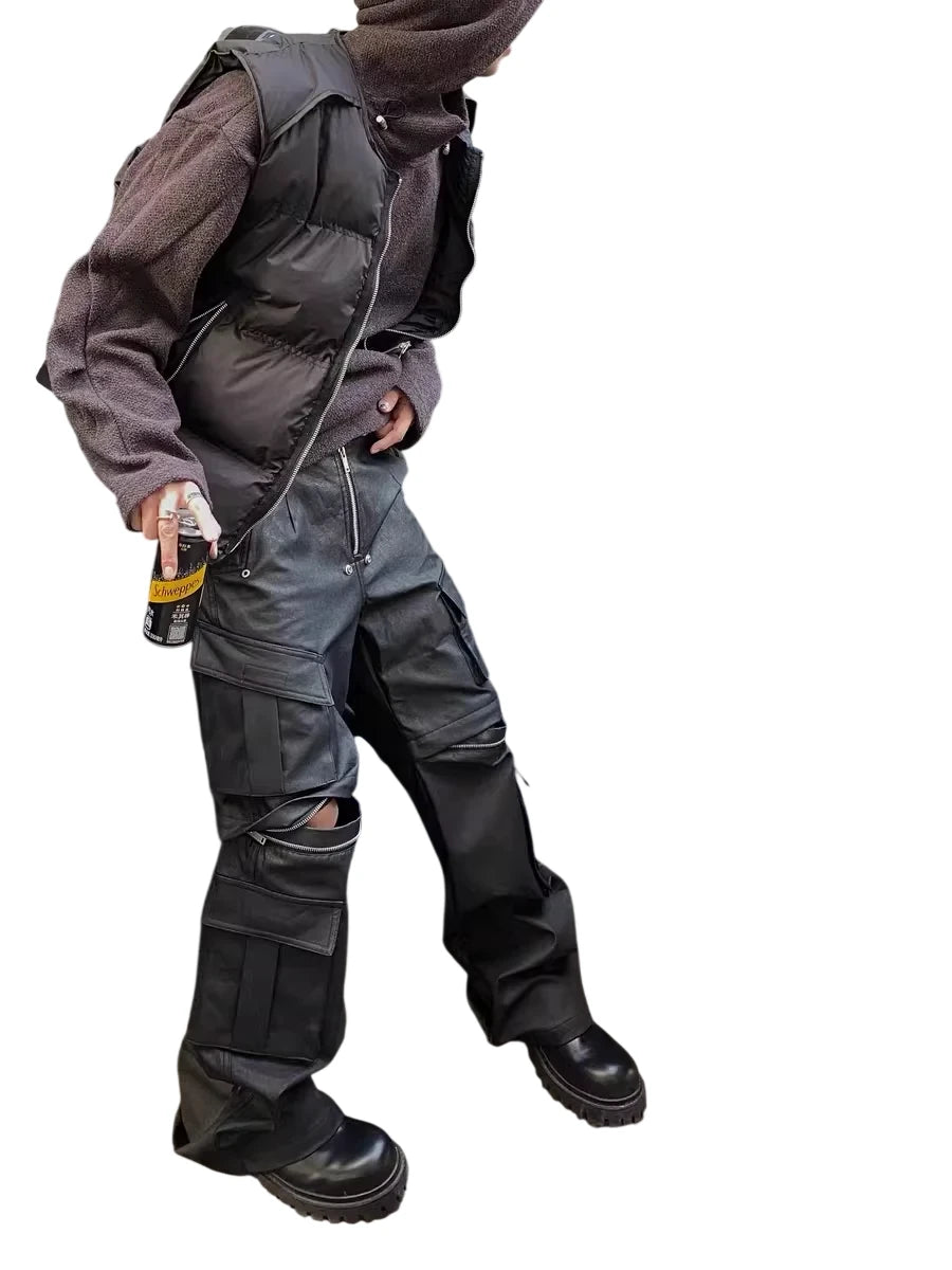Y OFFICIAL Hand-Waxed Wide-Leg Multi-Pocket Cargo Pants
