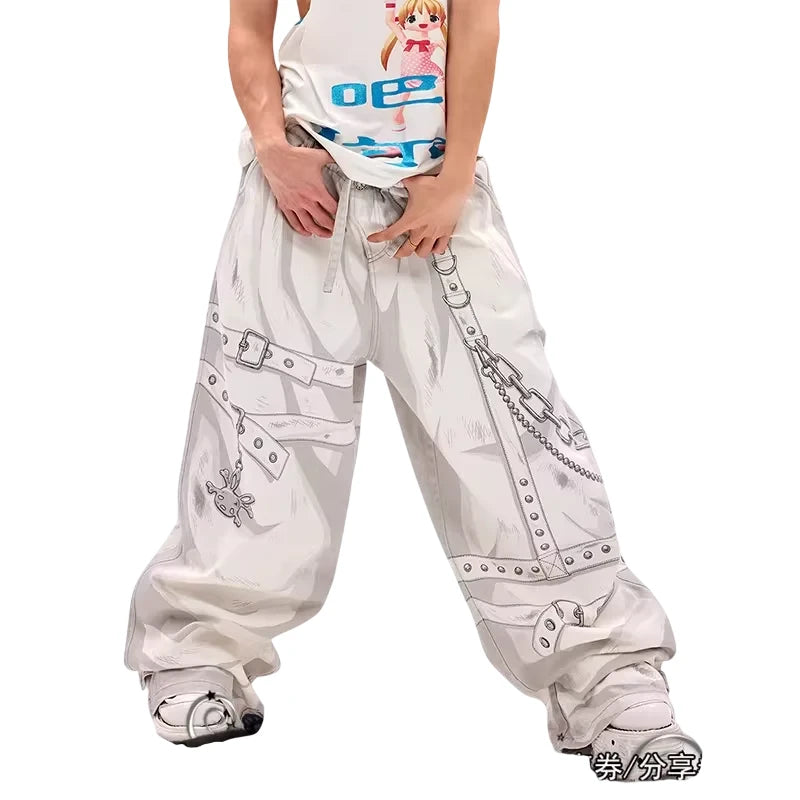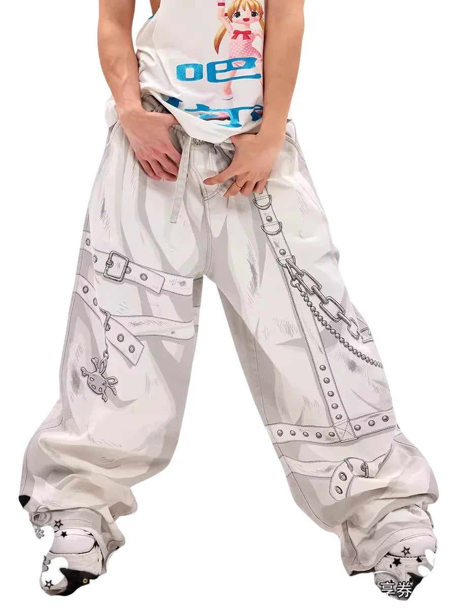 CFIERCE Hand-Painted Chain Print Wide-Leg Jeans