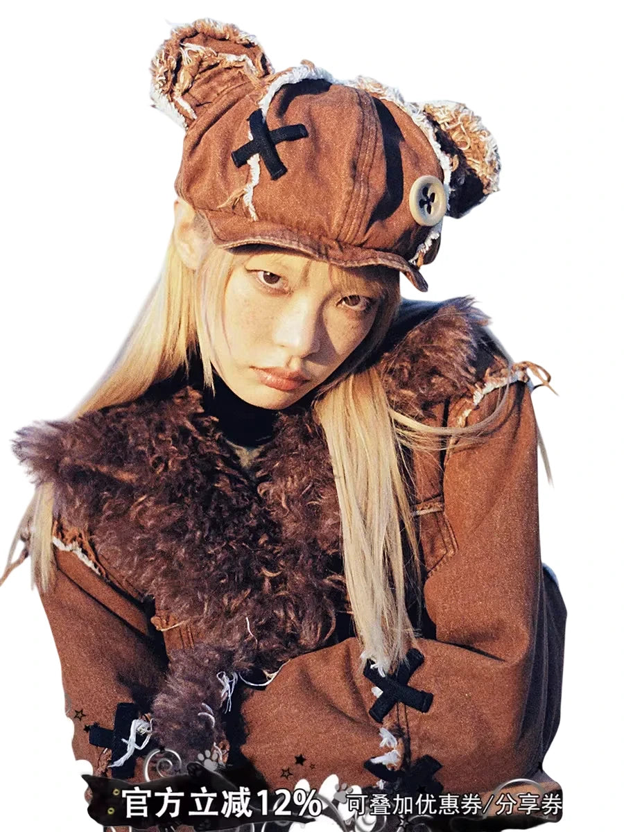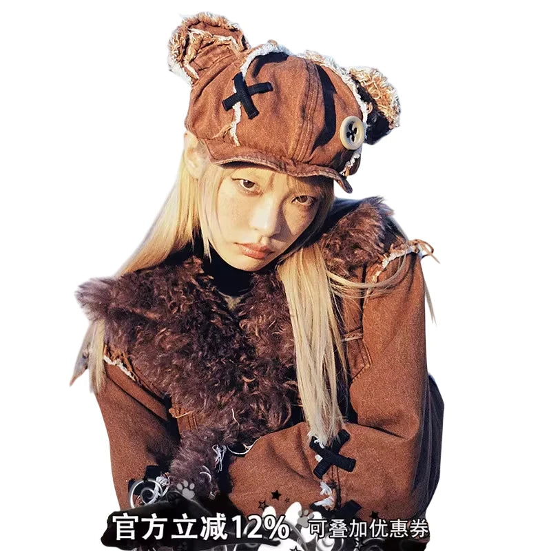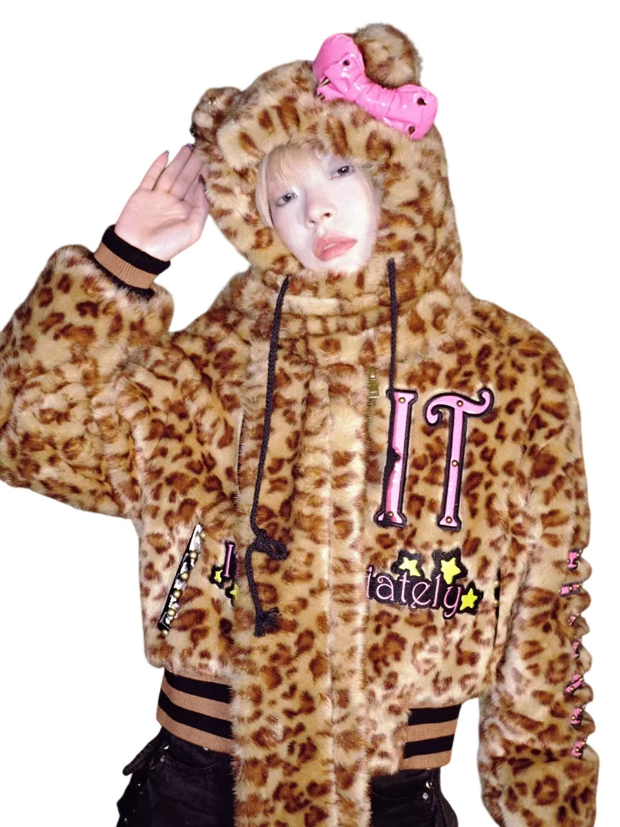 CFIERCE Leopard Print Faux Fur Hoodie with Bear Ears
