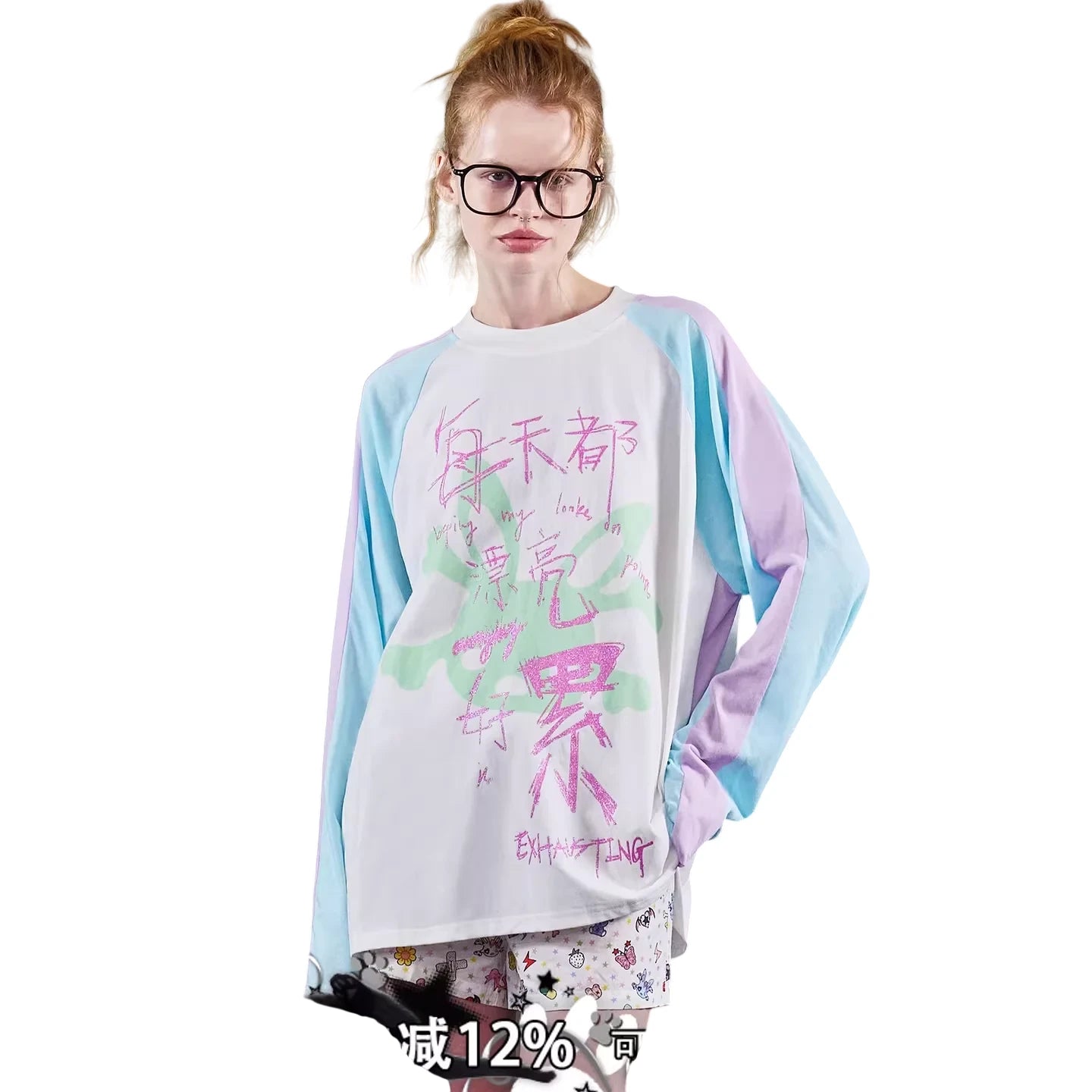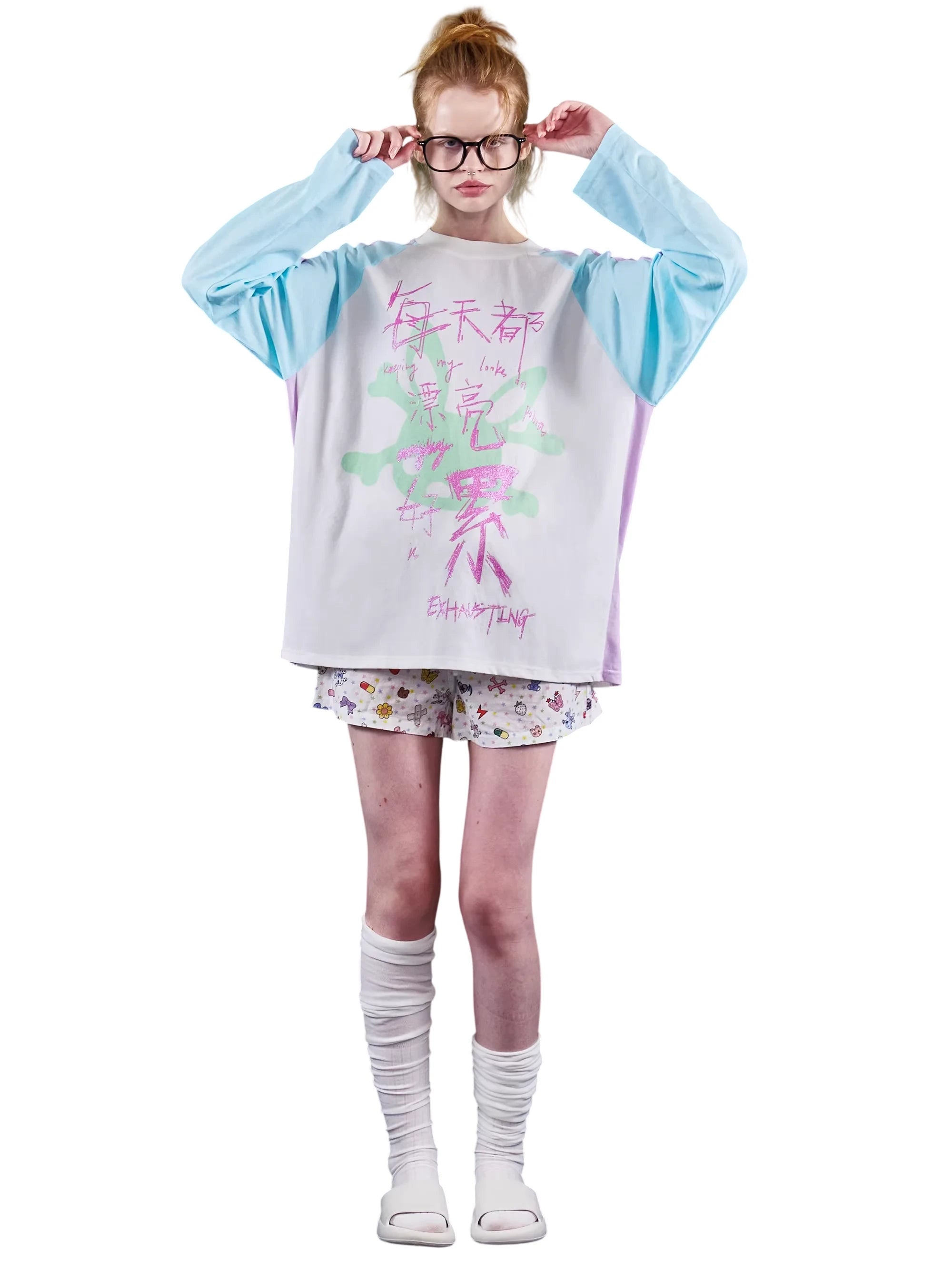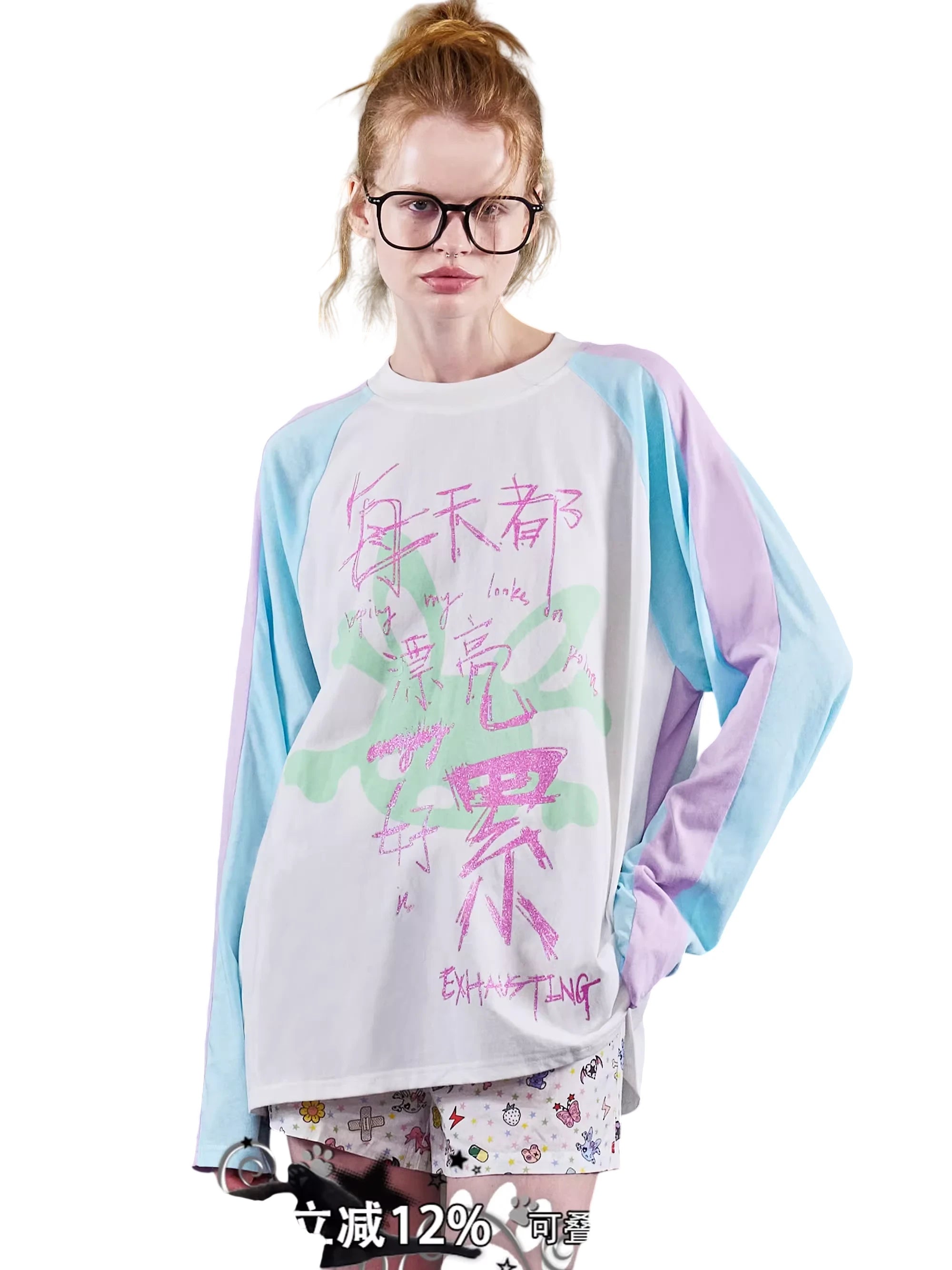 CFIERCE Glitter Print Colorblock Raglan Sleeve T-Shirt