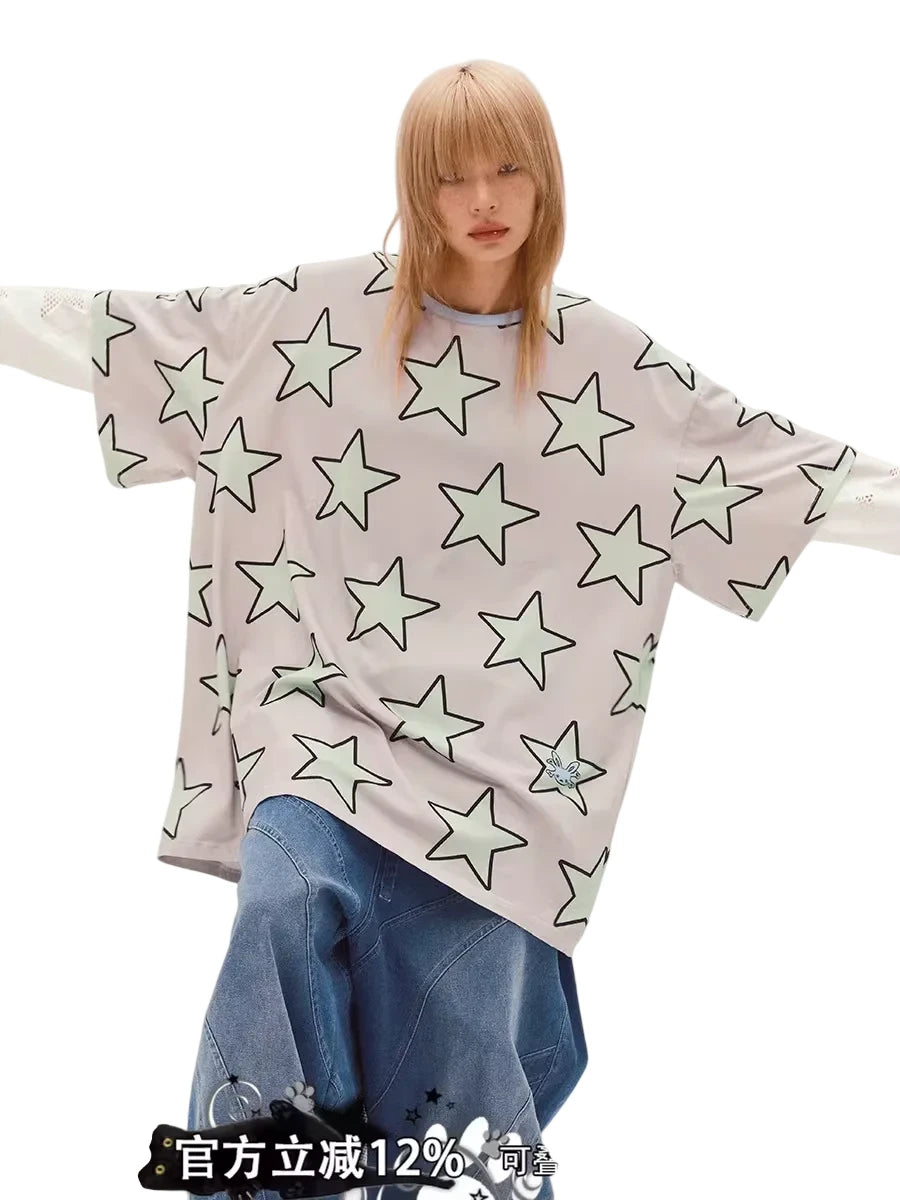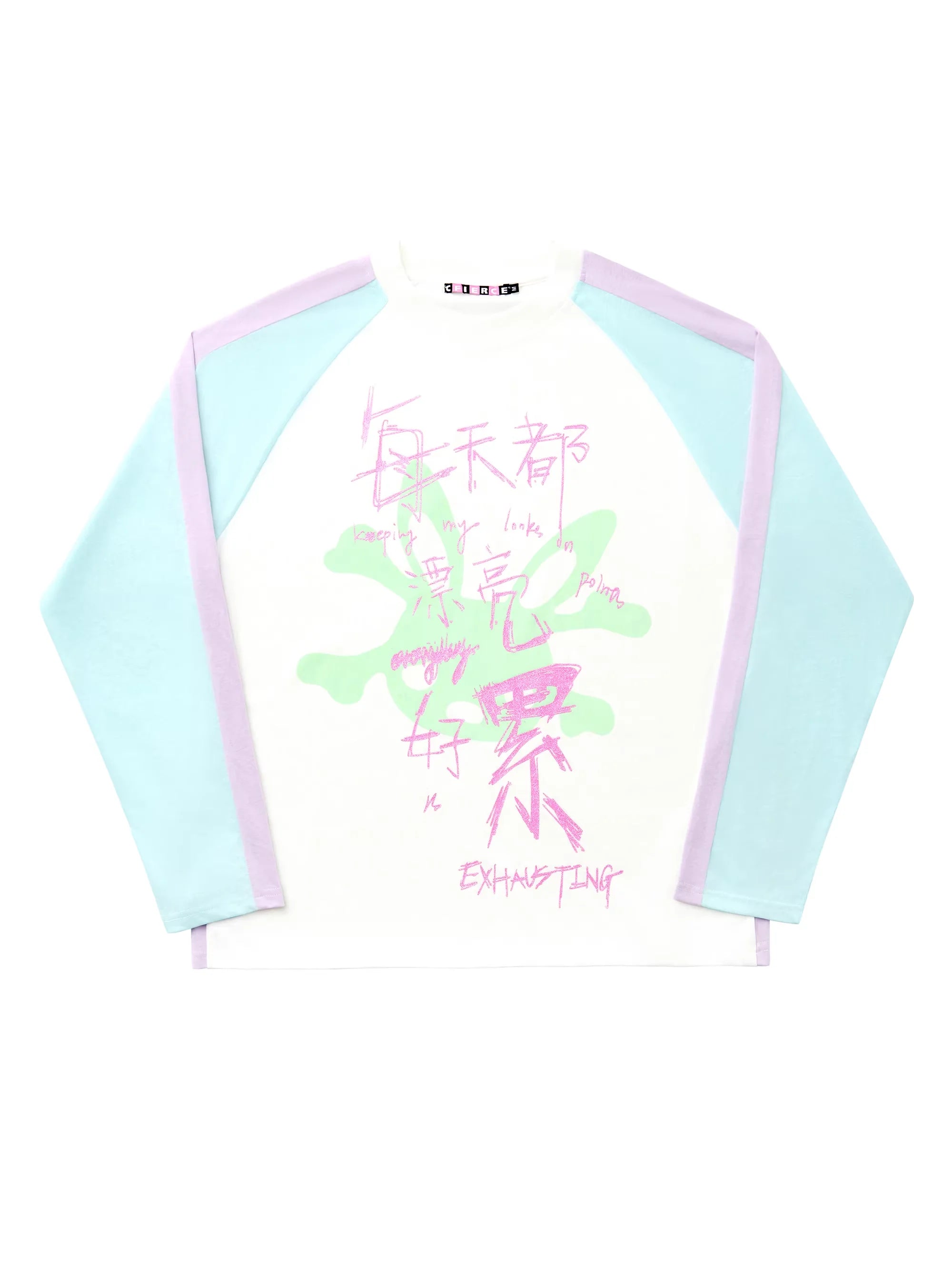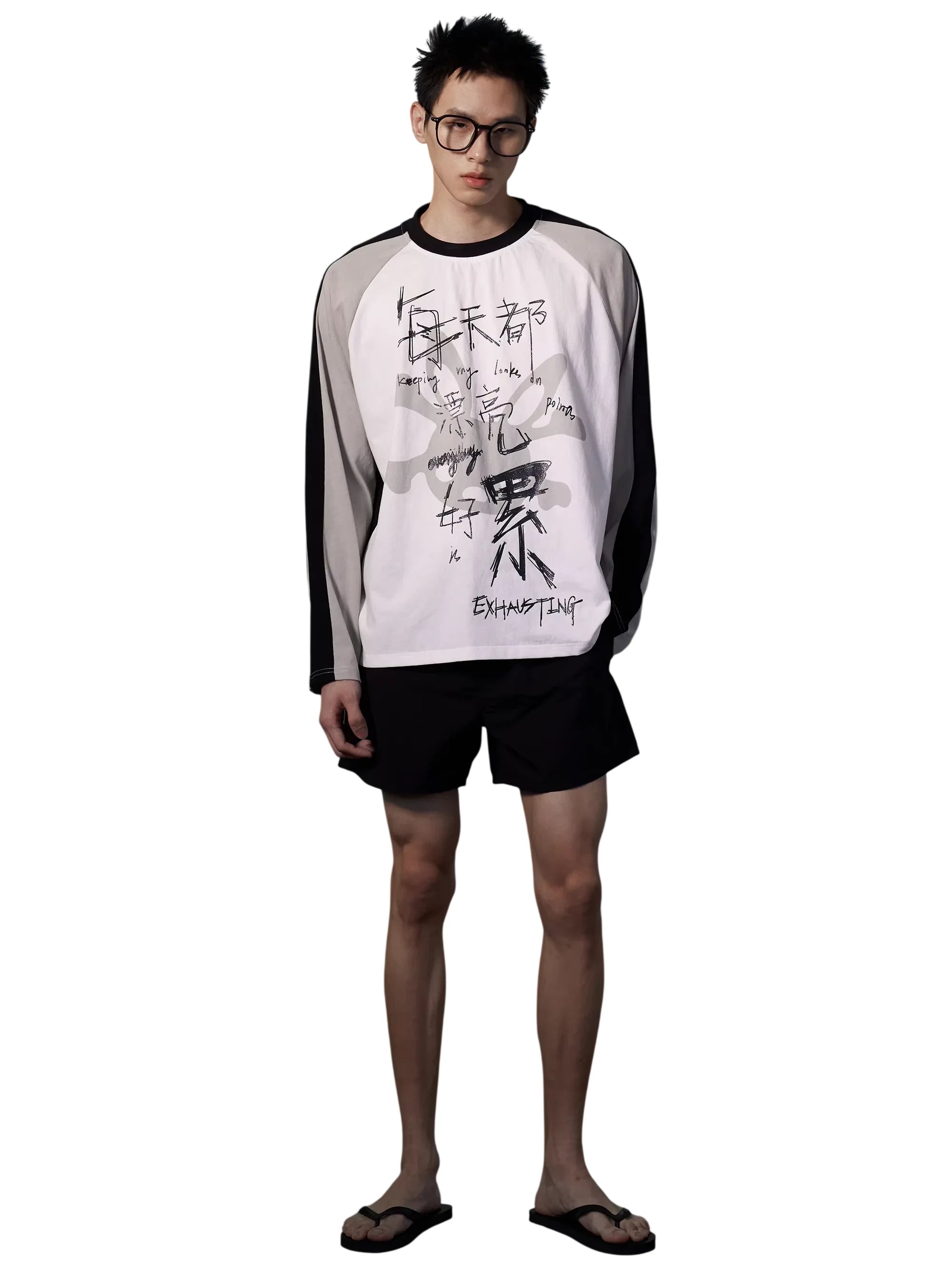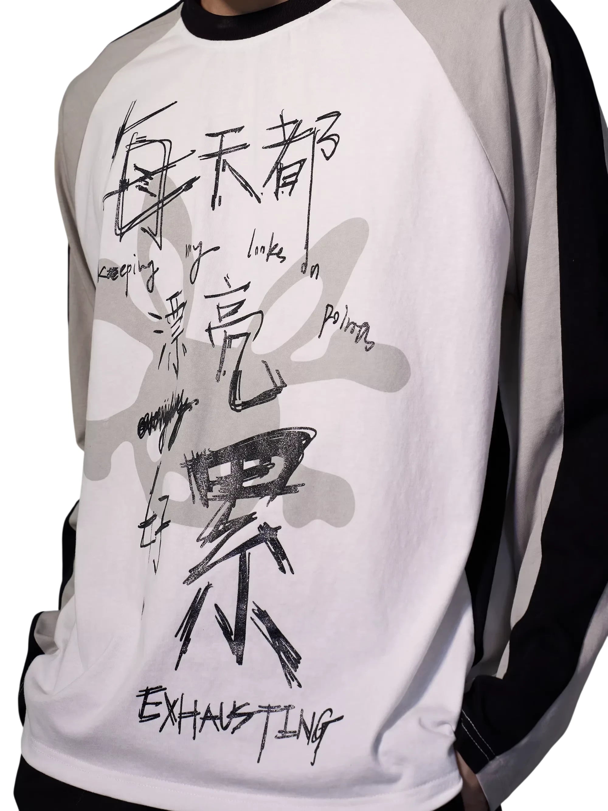 CFIERCE Glitter Print Colorblock Raglan Sleeve T-Shirt