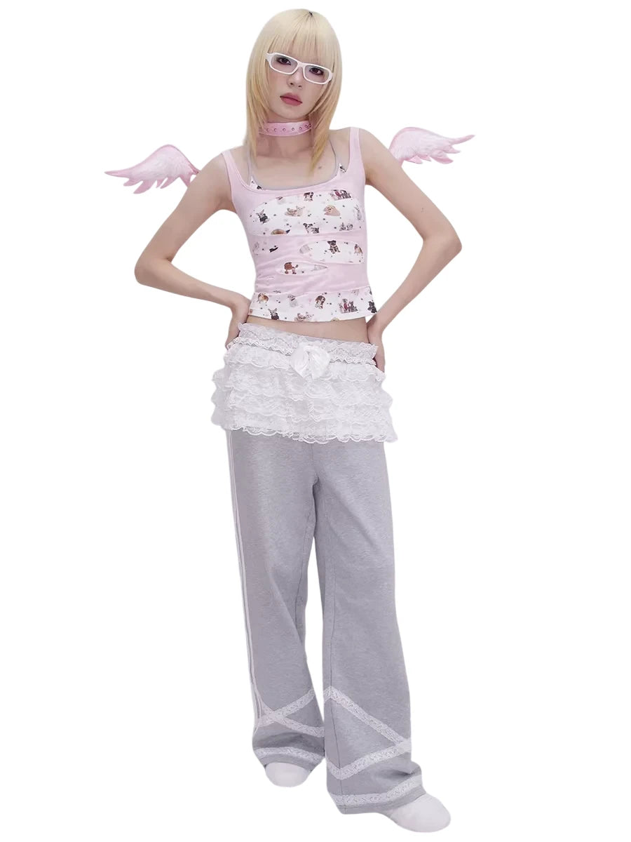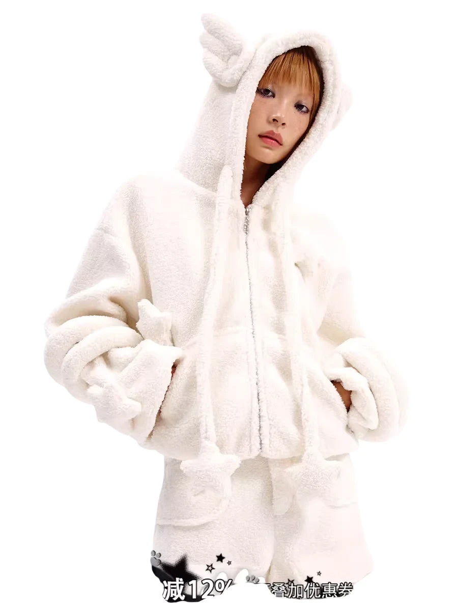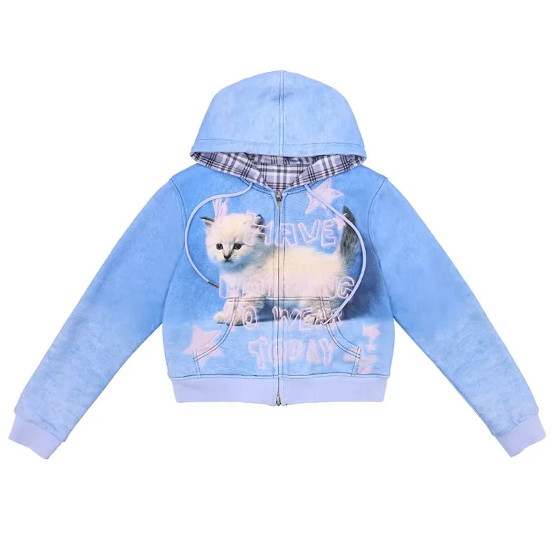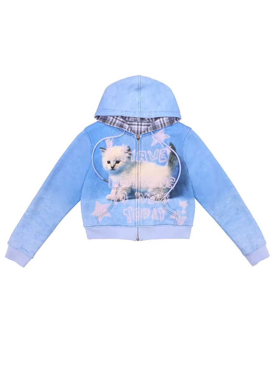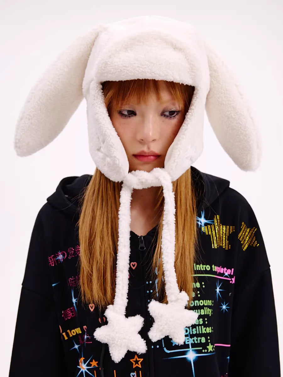 CFIERCE Cat and Bunny Print Lace Trim Hoodie