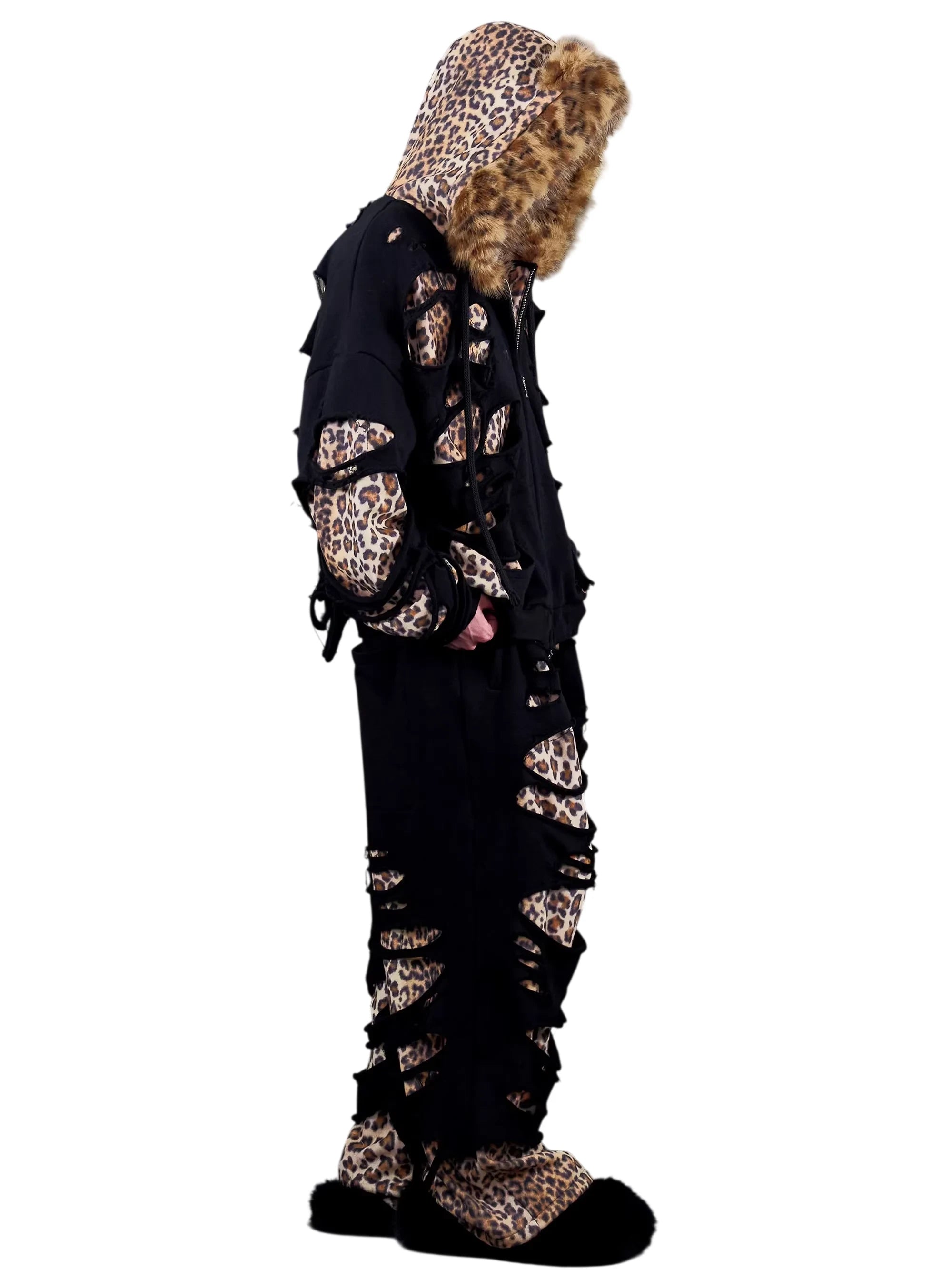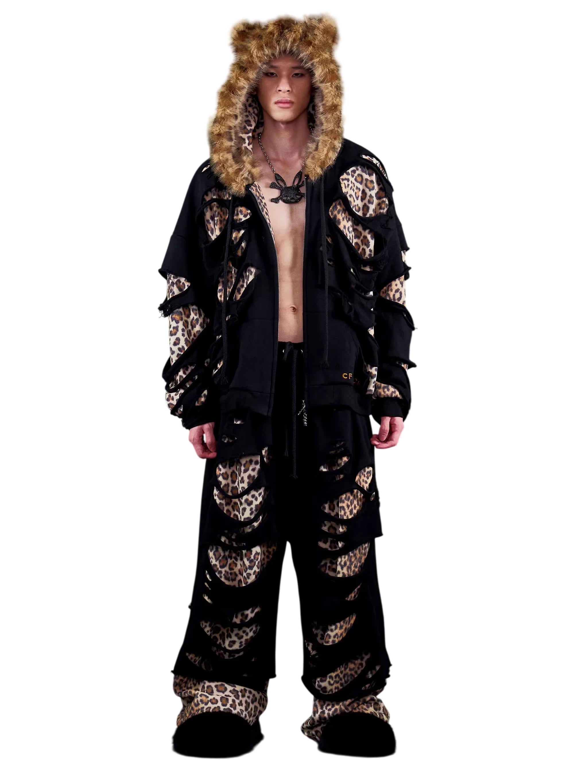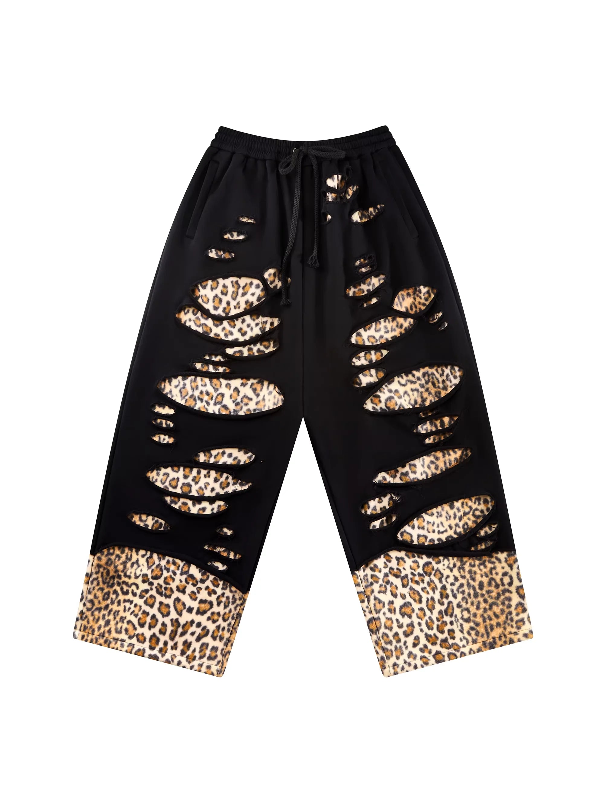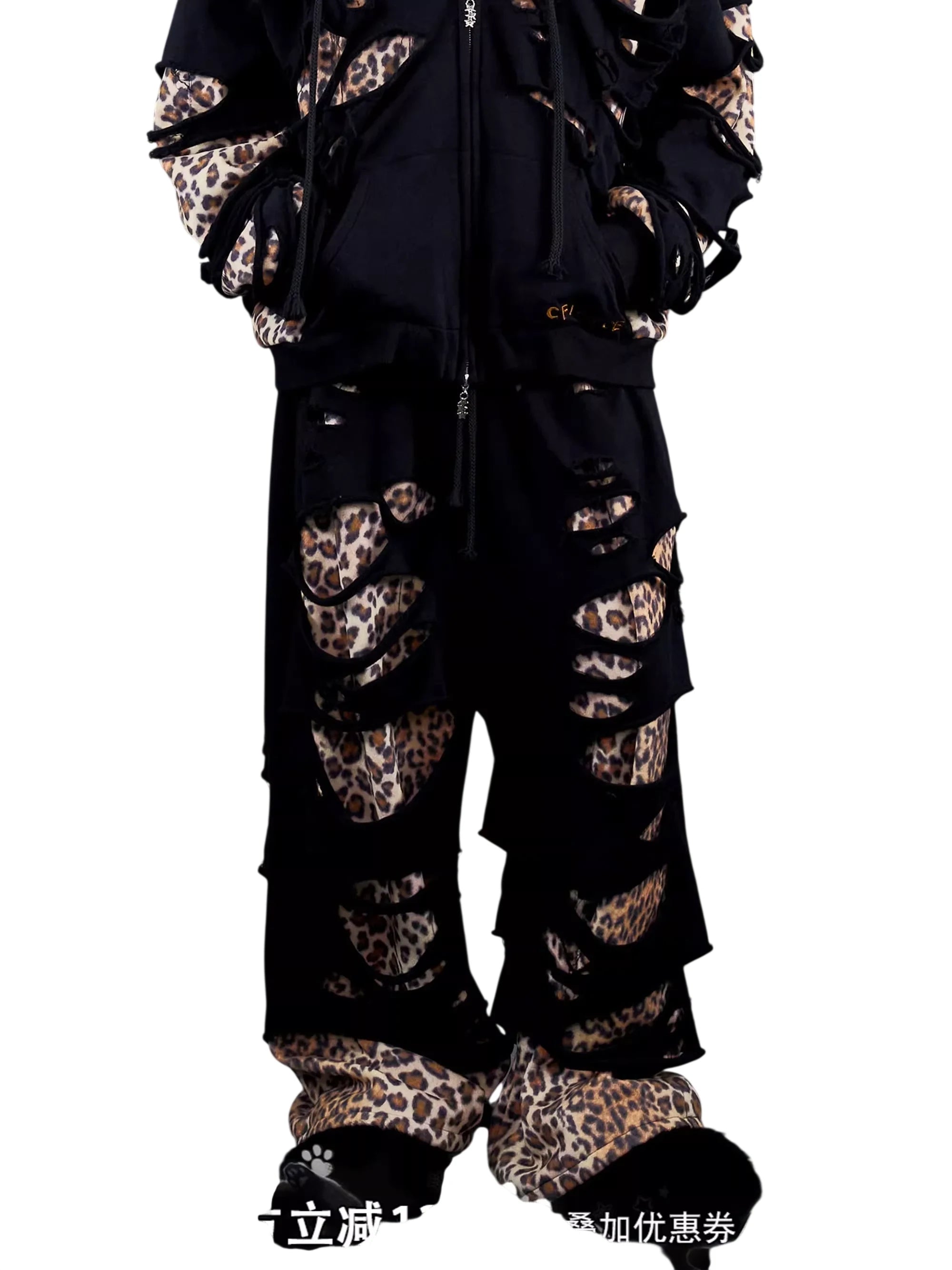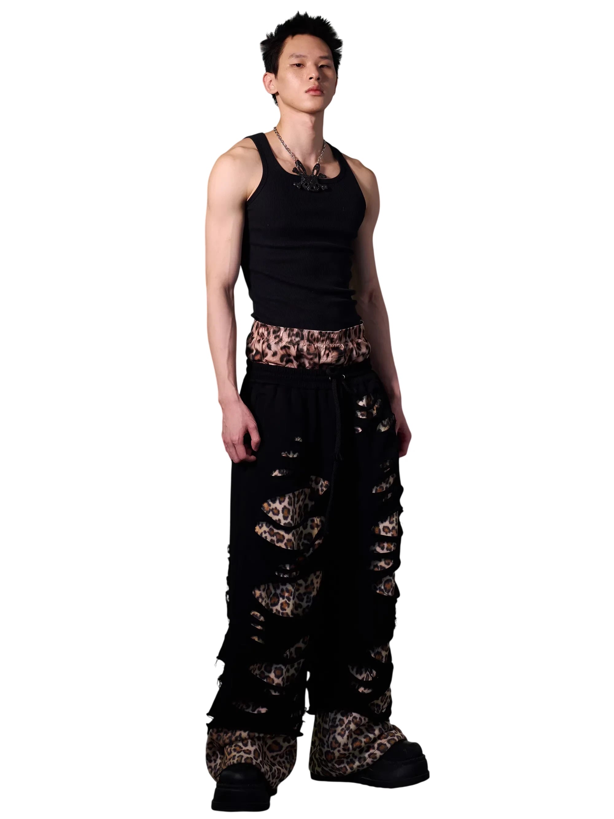 CFIERCE Distressed Double-Layer Leopard Sweatpants
