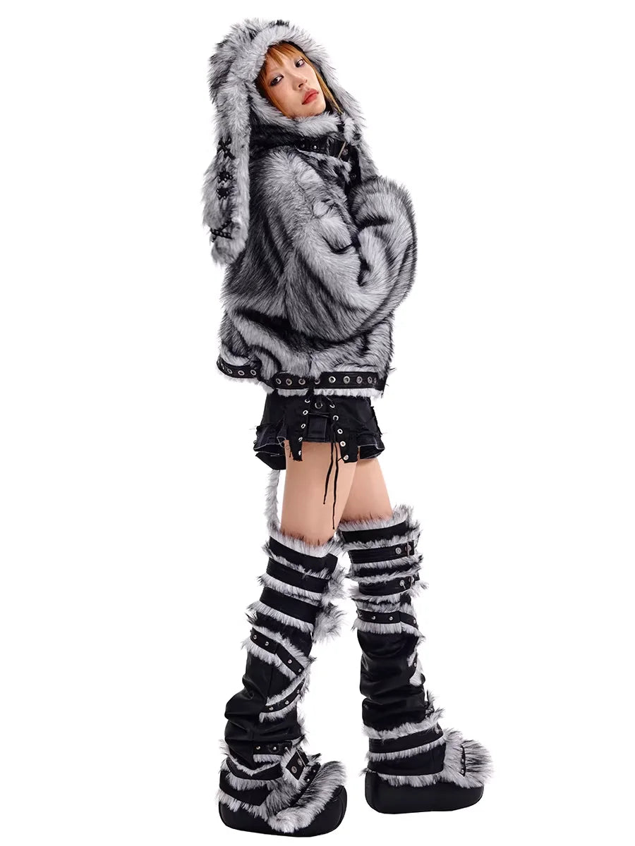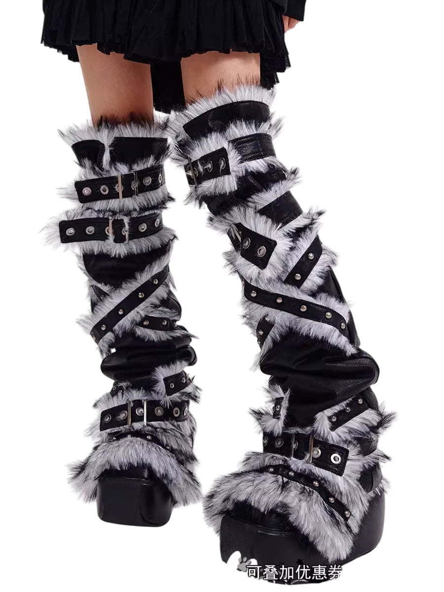 CFIERCE Faux Fur and Leather Patchwork Leg Warmers