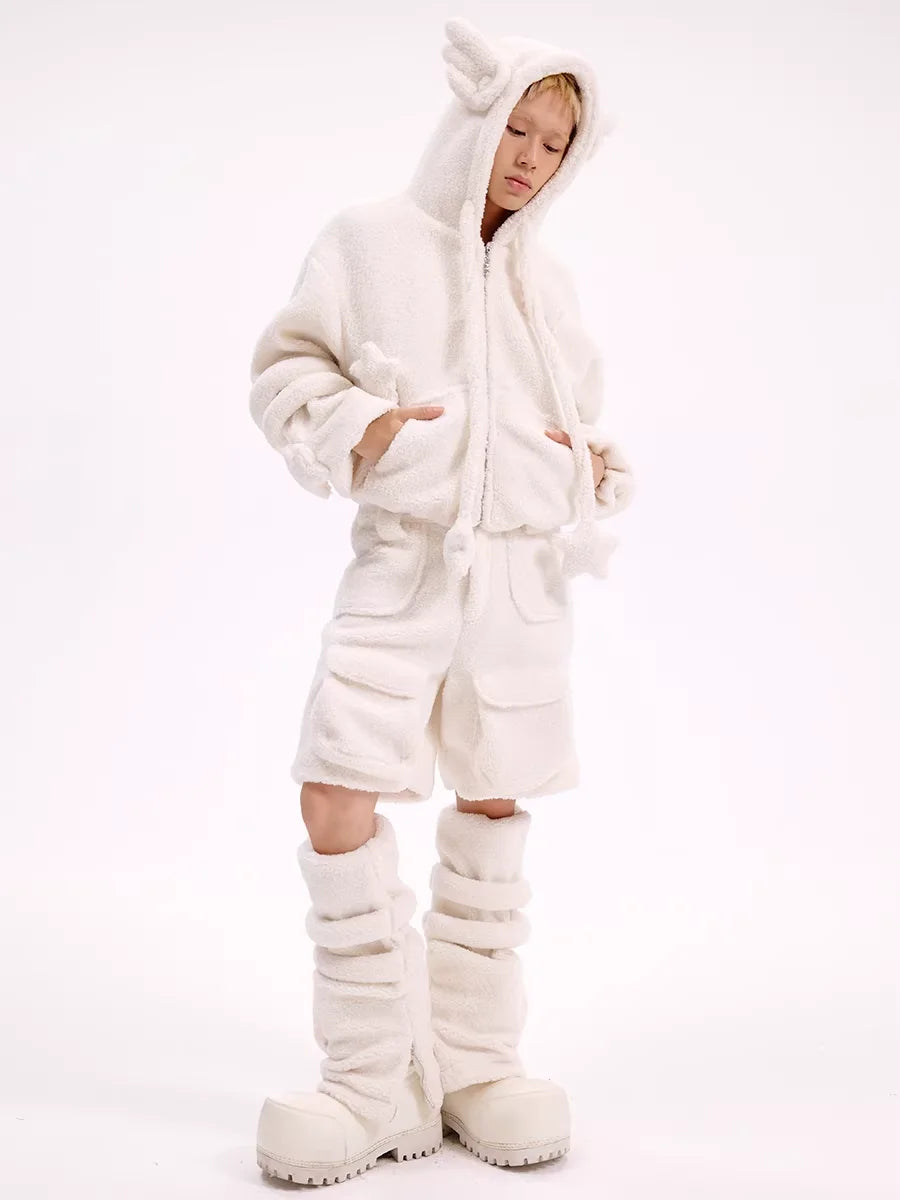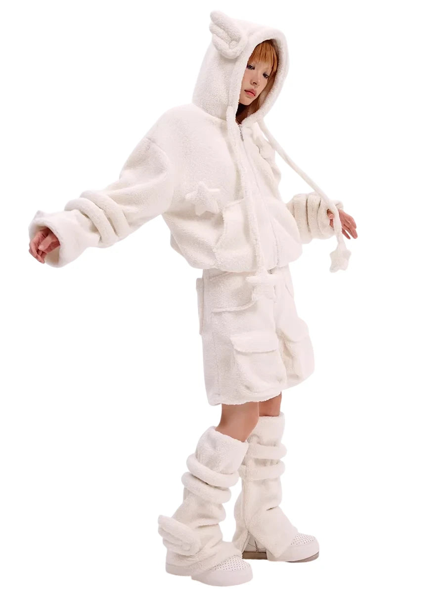 CFIERCE Women's Fleece Hoodie Pajama Set with Animal Ears