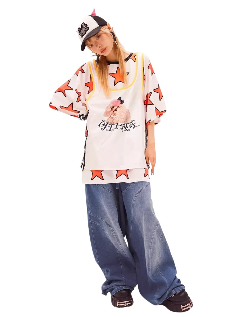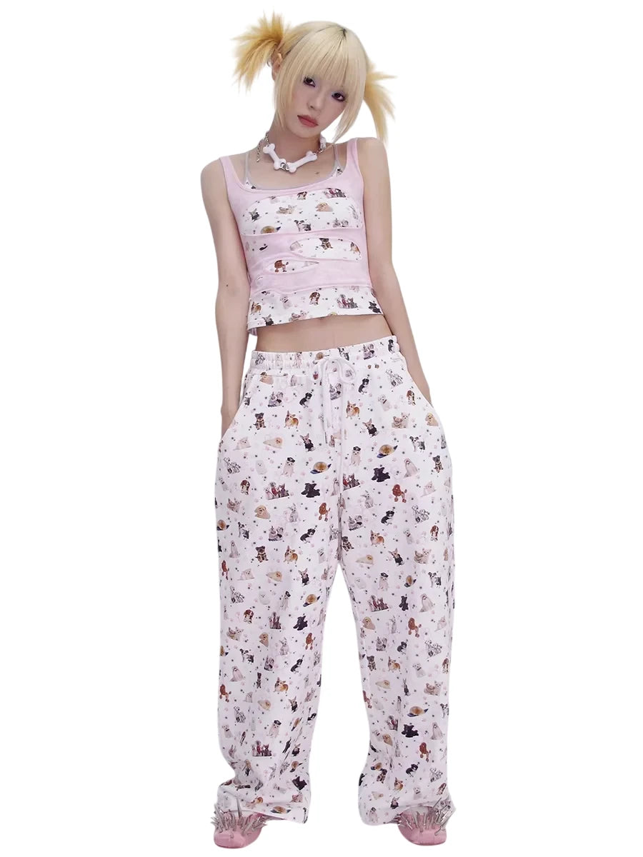 CFIERCE Graffiti Print Drawstring Stacked Sweatpants