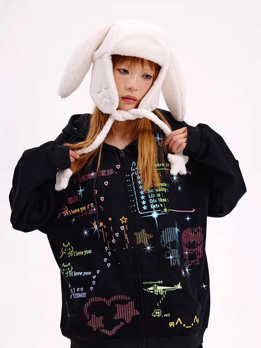 CFIERCE Starry Night Rhinestone Hoodie with Bat Ears