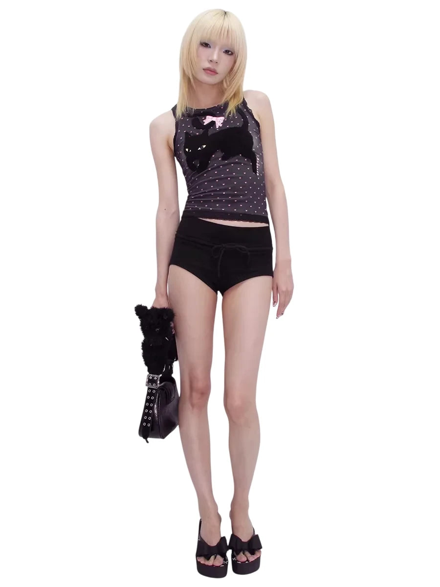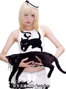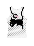 CFIERCE Black Cat Embroidered Heart Print Girls Tank Top