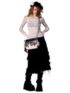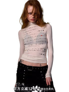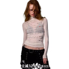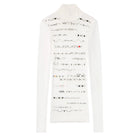 This women's long-sleeve turtleneck top features a semi-sheer wool blend fabric with playful ASCII-style emoticon prints and text graphics like 'I LOVE YOU.' Designed with a slim fit, it offers a modern, tech-inspired aesthetic perfect for edgy and alternative fashion styles.