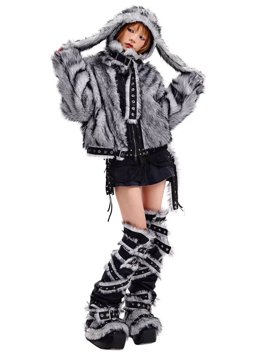 CFIERCE Faux Fur and Leather Patchwork Leg Warmers