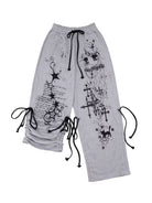 CFIERCE Graffiti Print Drawstring Stacked Sweatpants