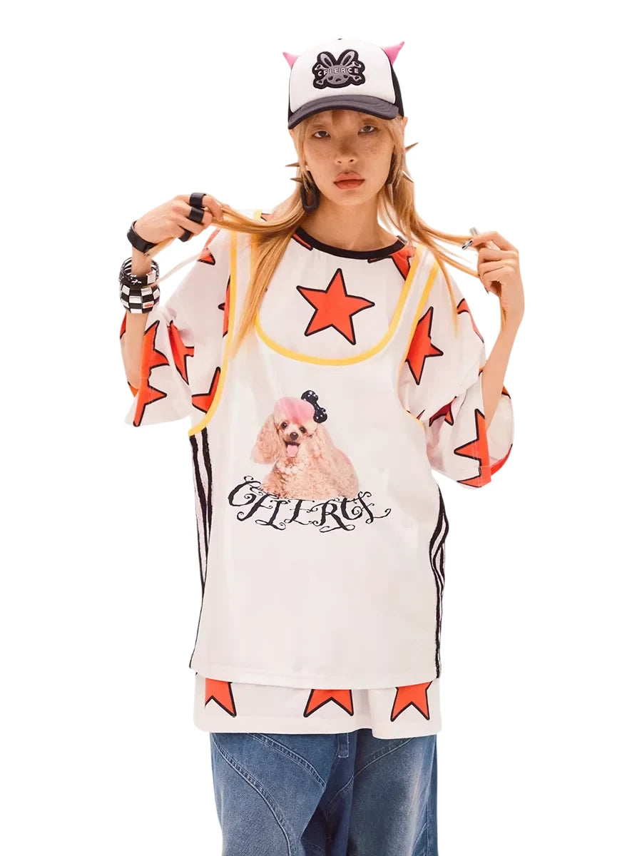 CFIERCE Oversized Star Print T-Shirt