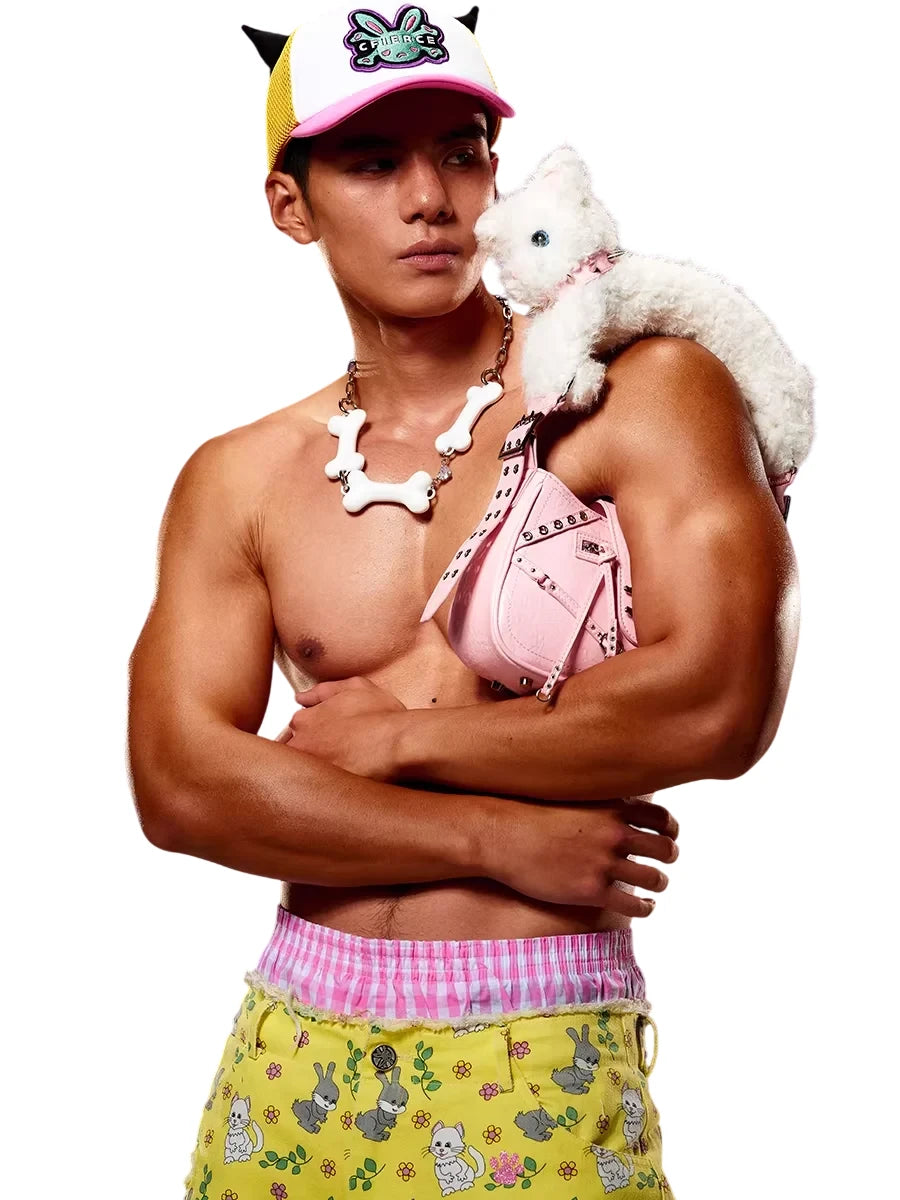 CFIERCE Pastel Pink Cat Strap Tote Bag