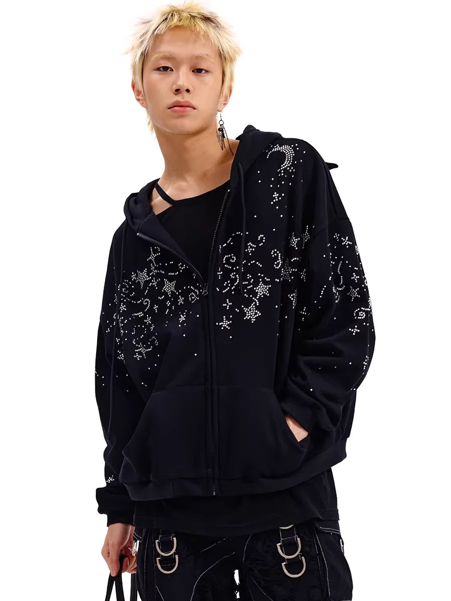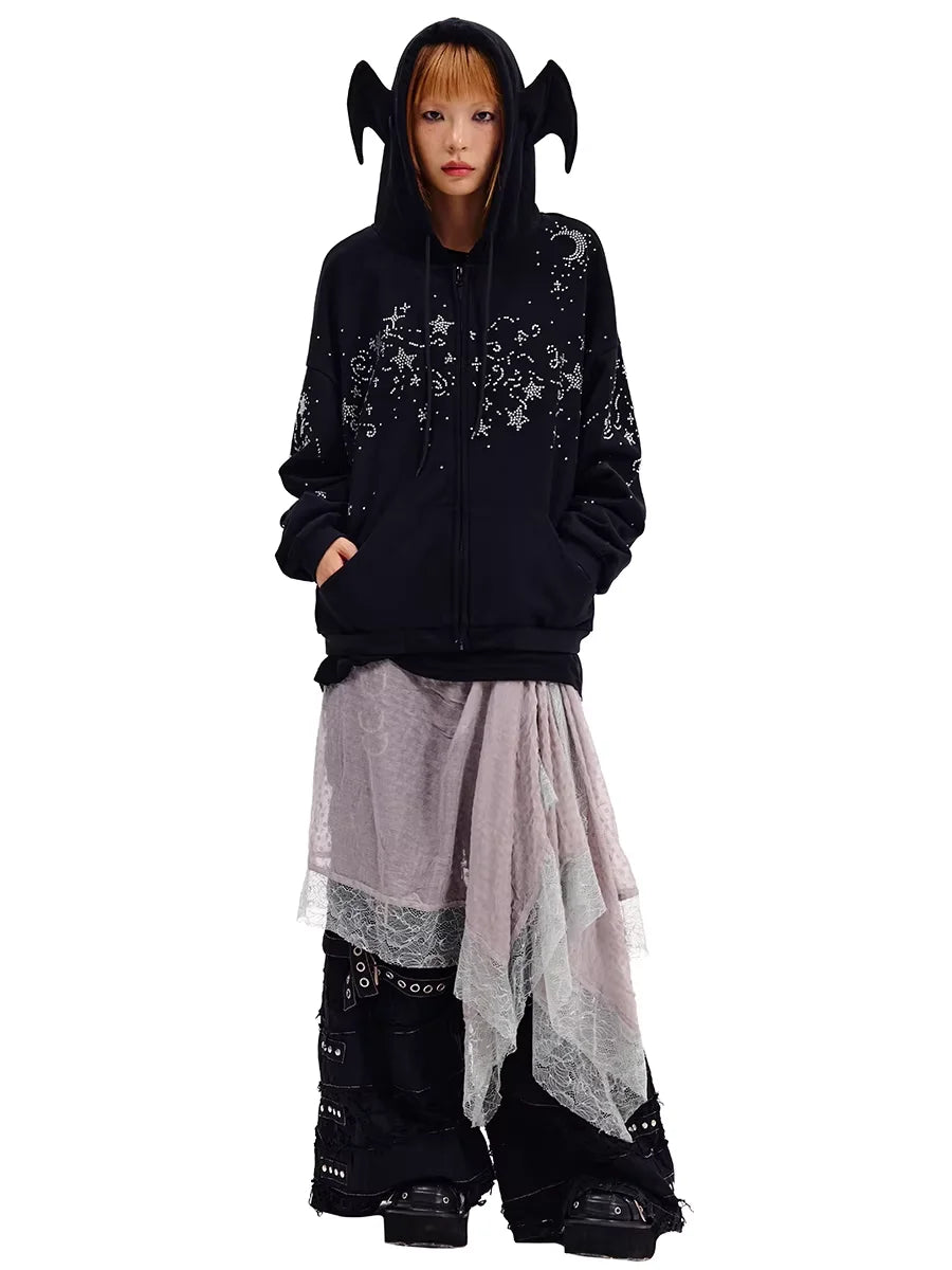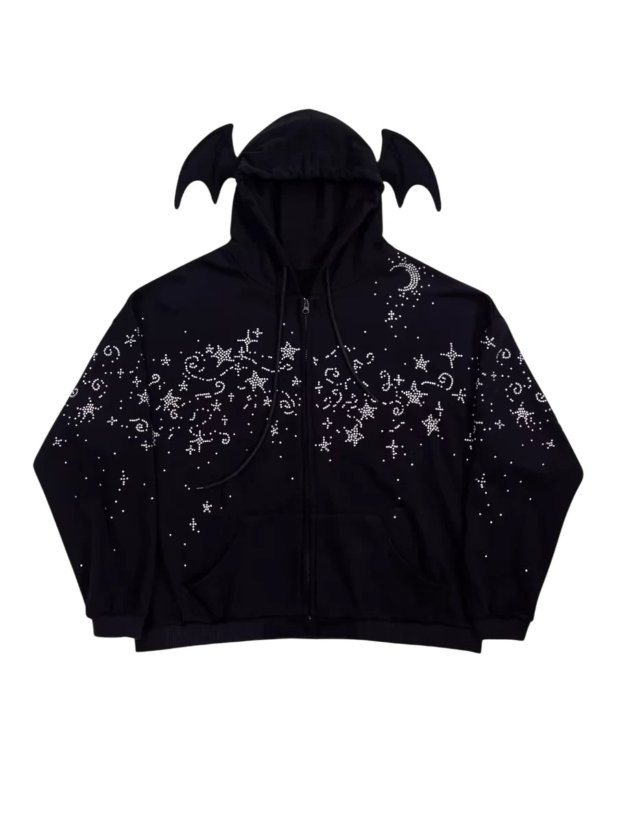 CFIERCE Starry Night Rhinestone Hoodie with Bat Ears