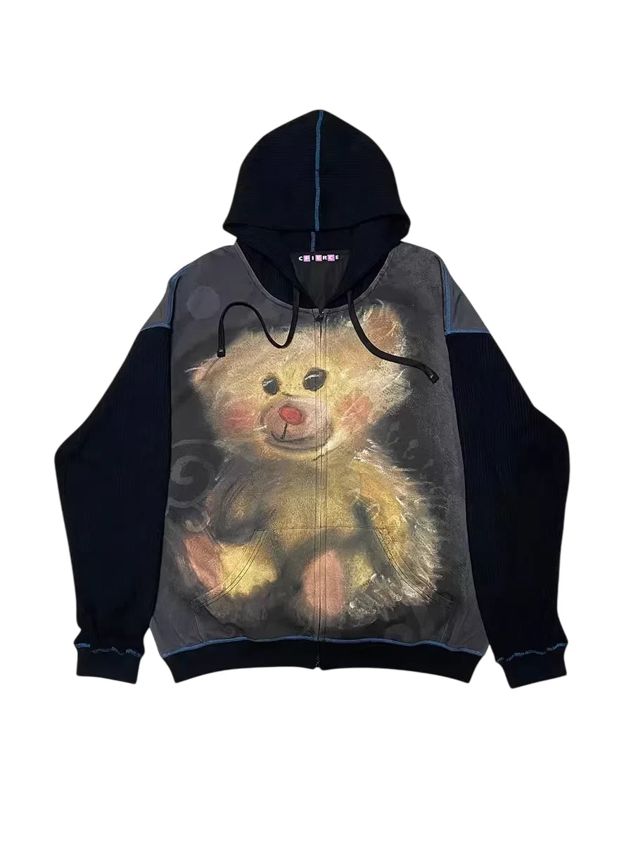 CFIERCE Teddy Bear Graphic Zip-Up Hoodie