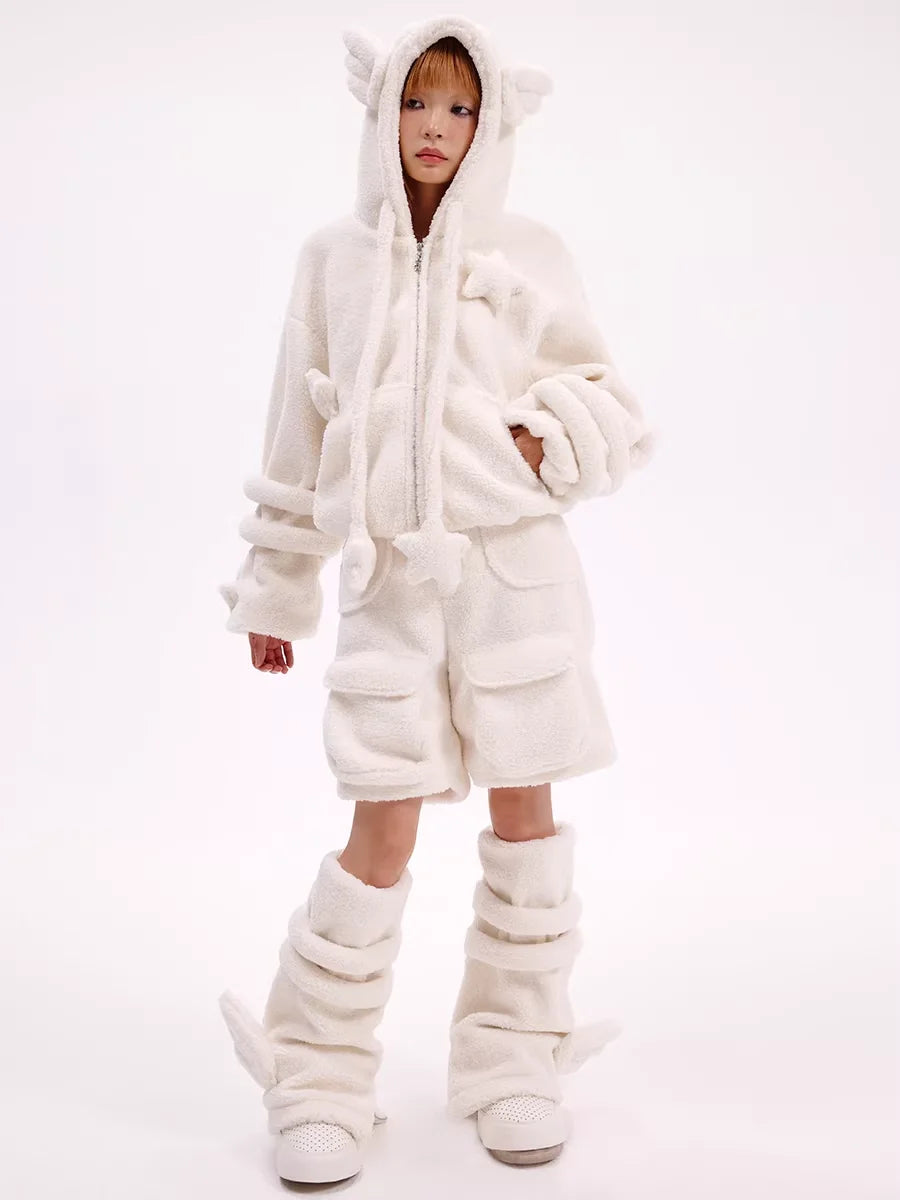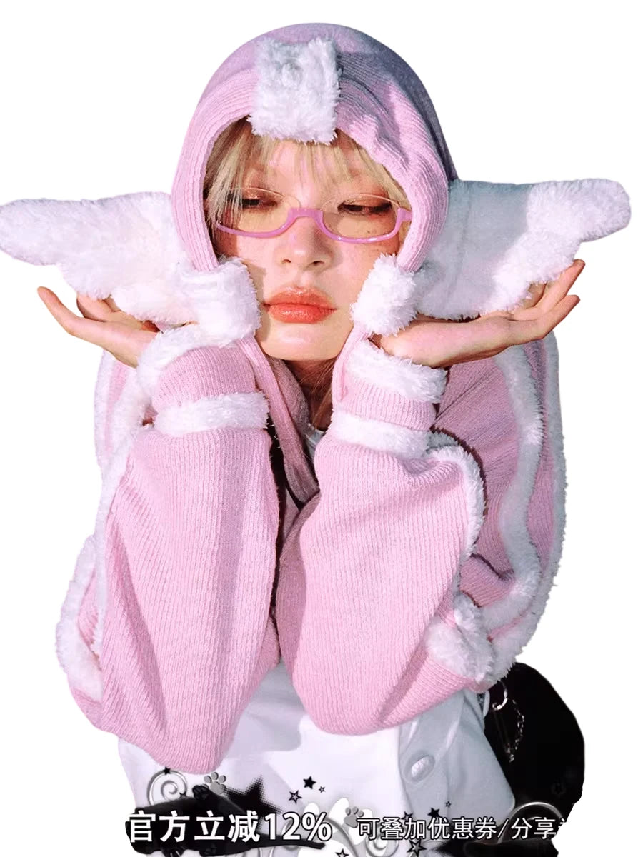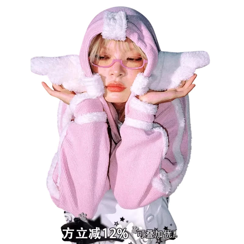 CFIERCE Angel Wings Fuzzy Hooded Scarf Hat
