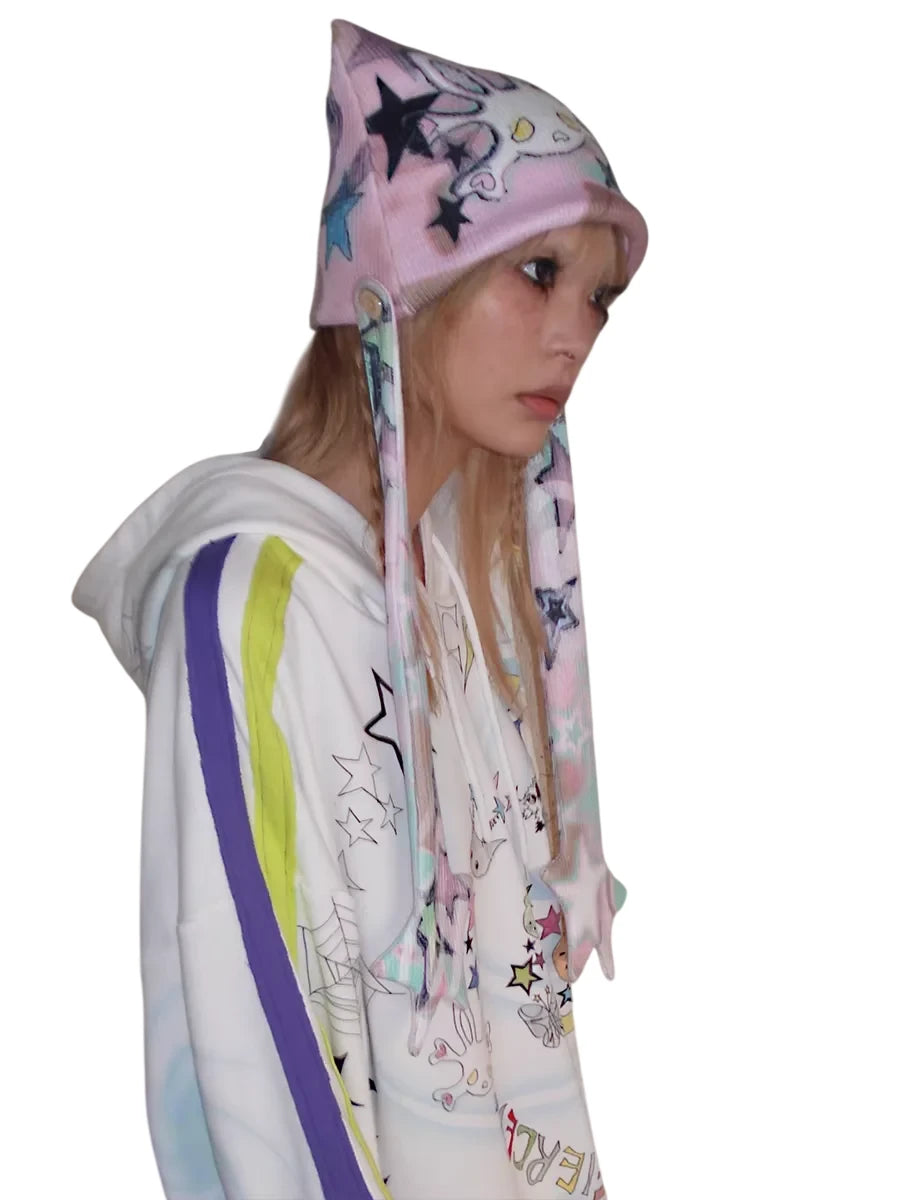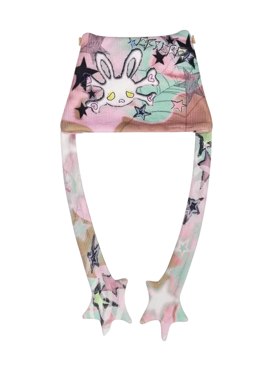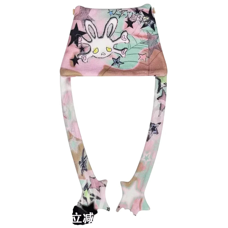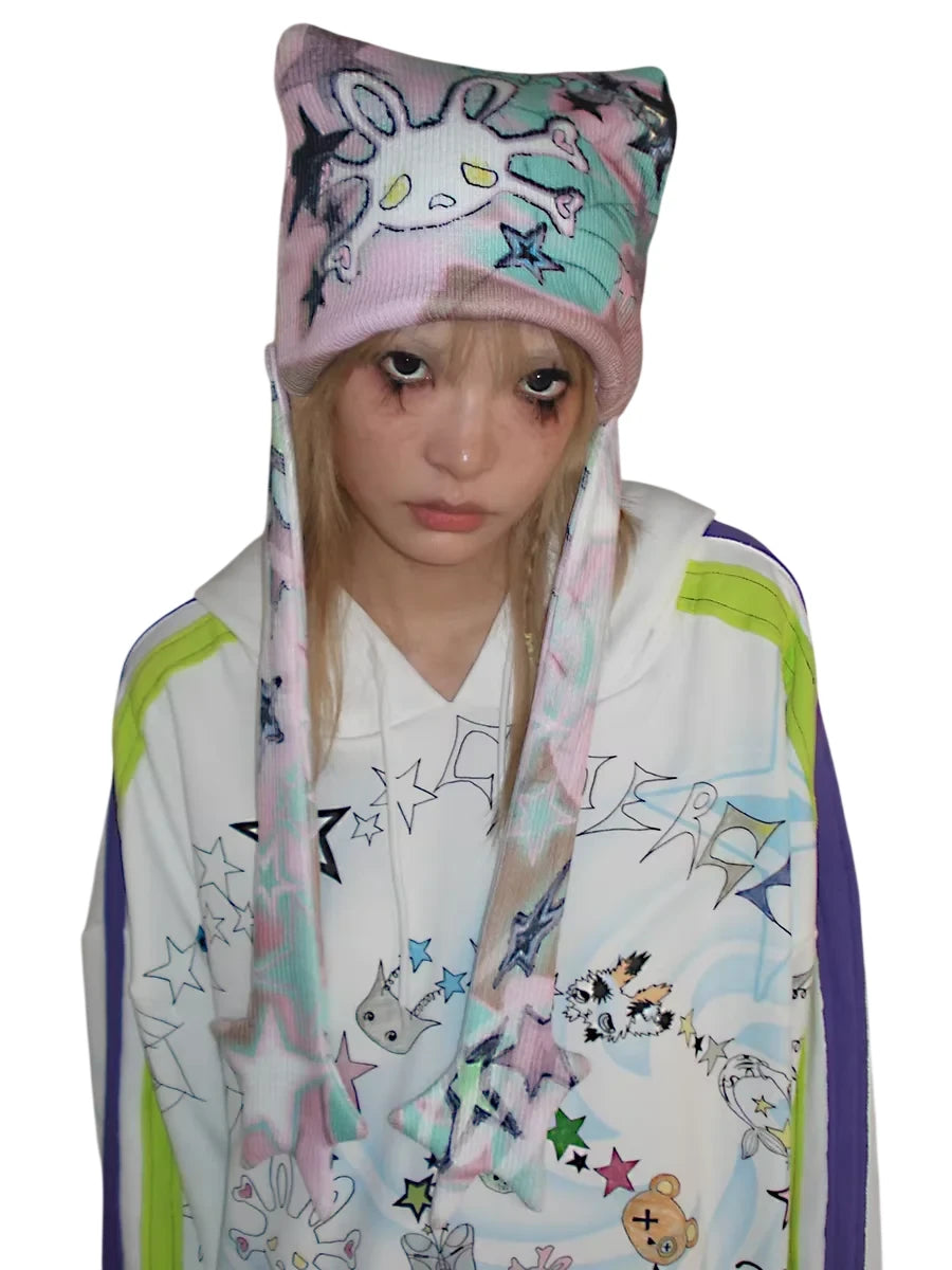 CFIERCE Skull Bunny Tie-Dye Knit Beanie with Ear Flaps