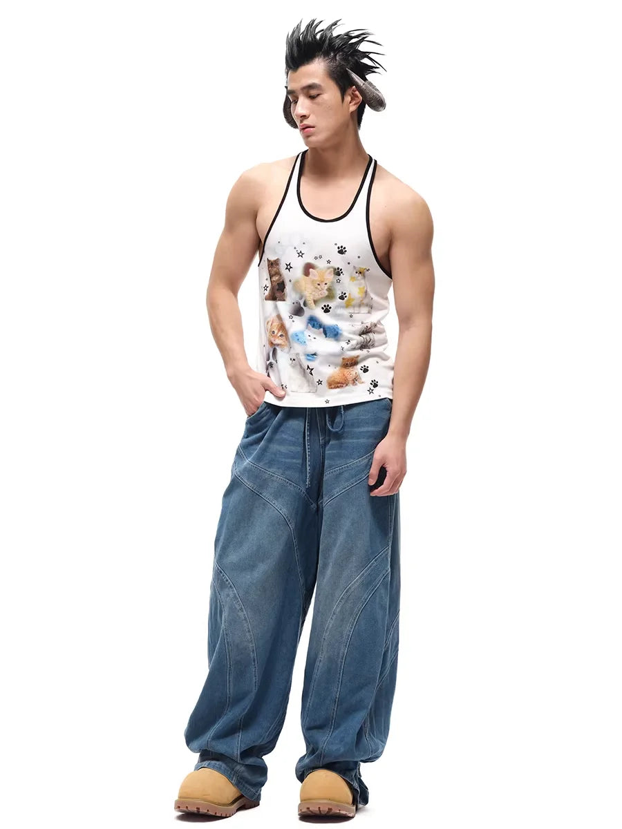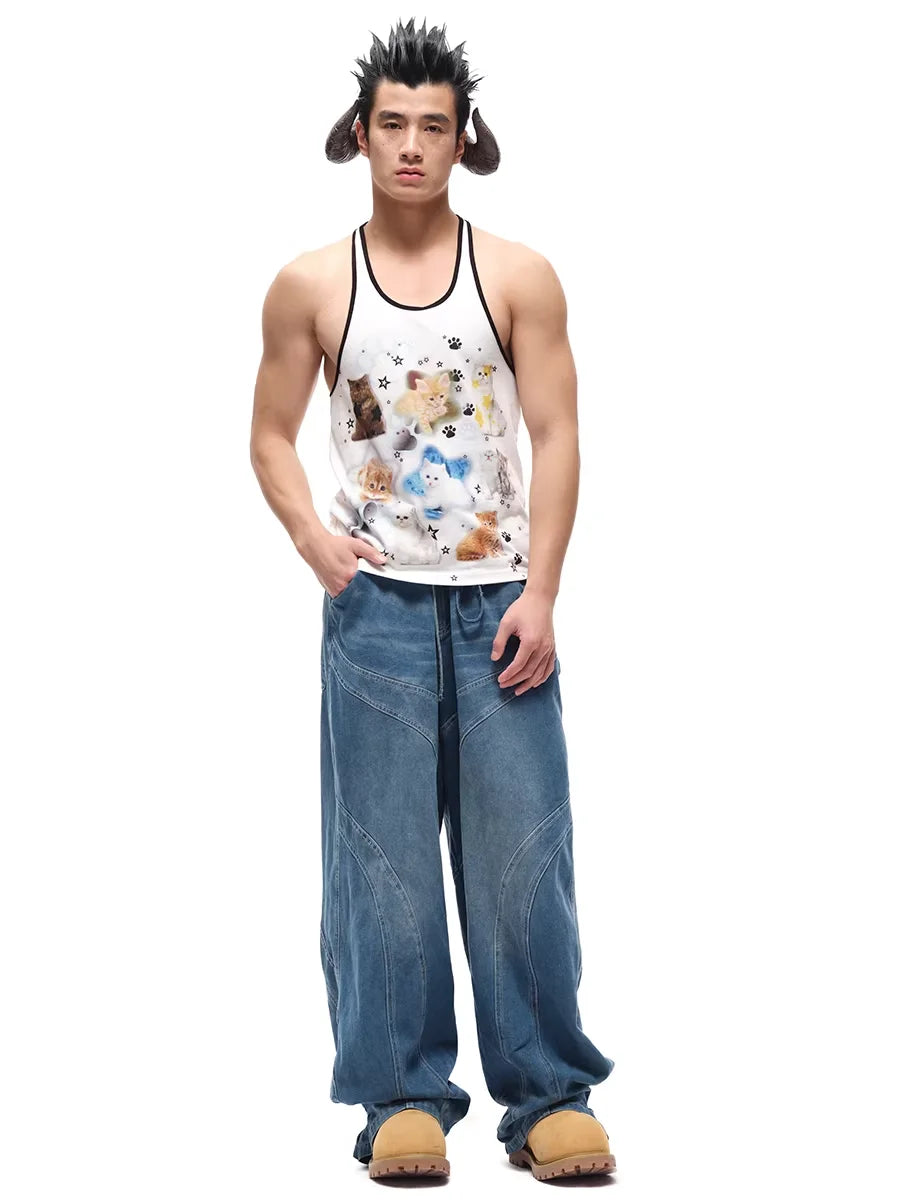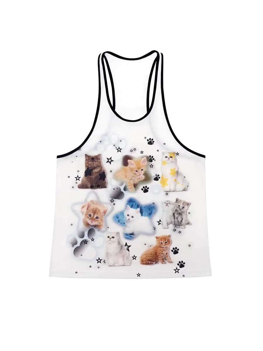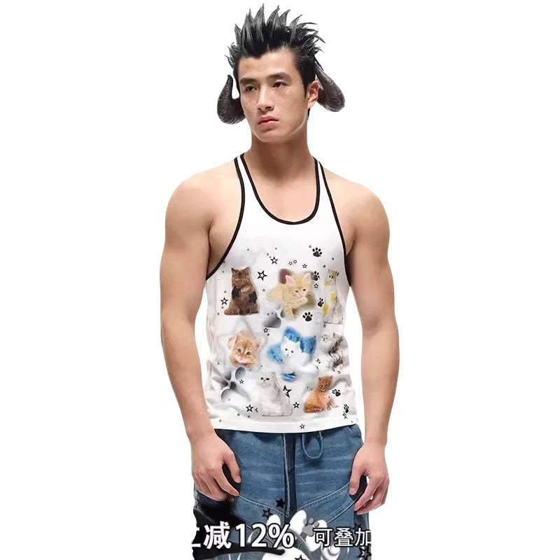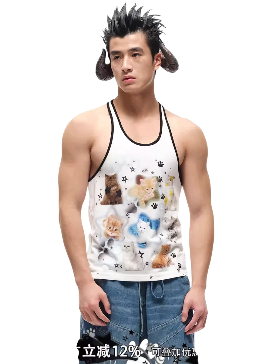CFIERCE Men's Cat Print Sleeveless Tank Top