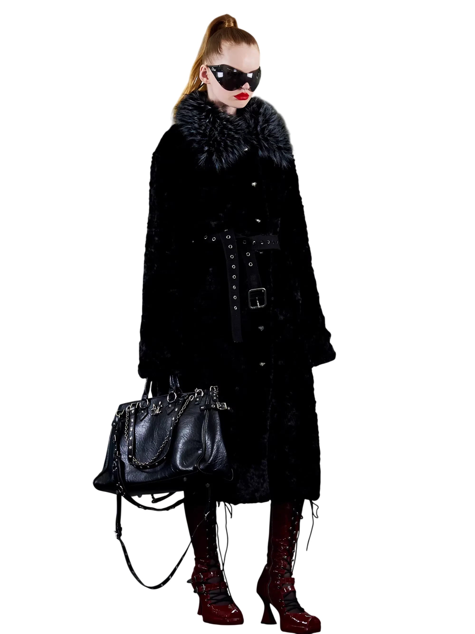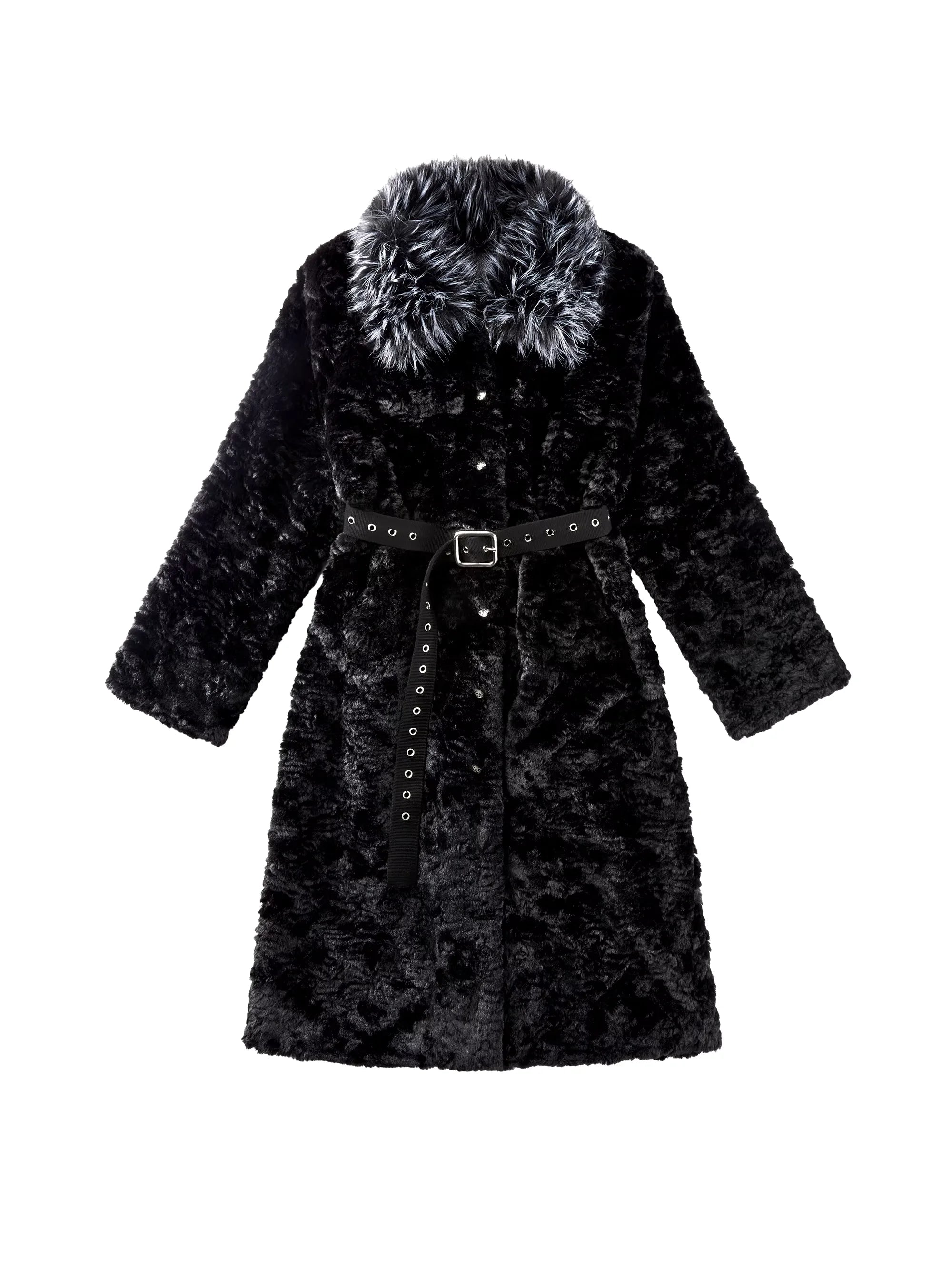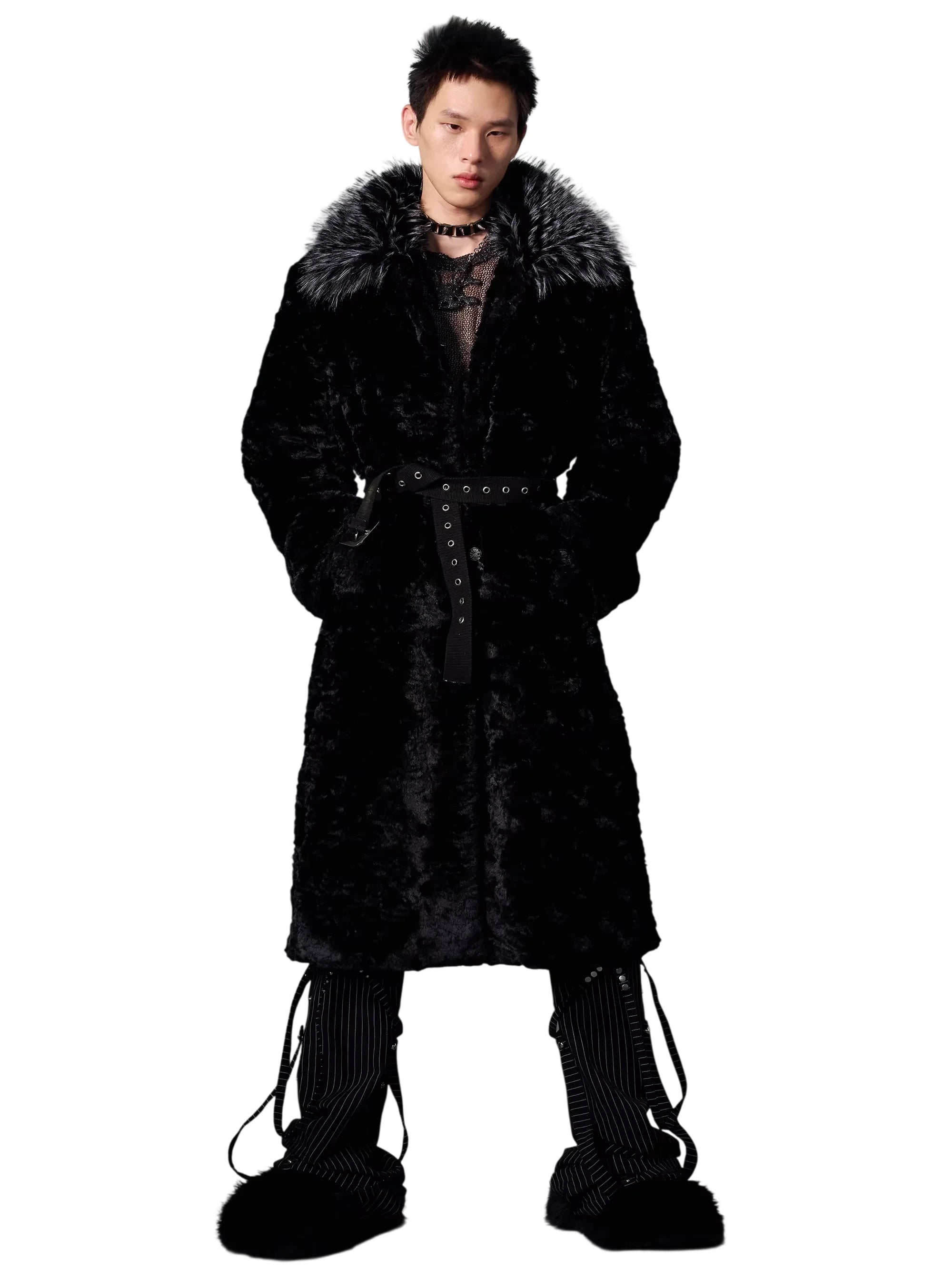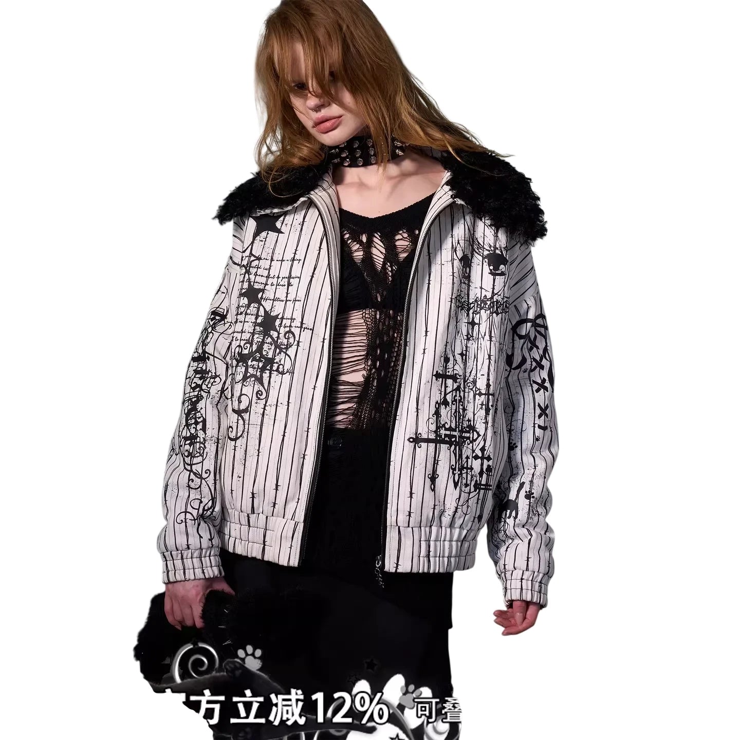 CFIERCE Striped Gothic Angel Print Jacket with Detachable Fur Collar